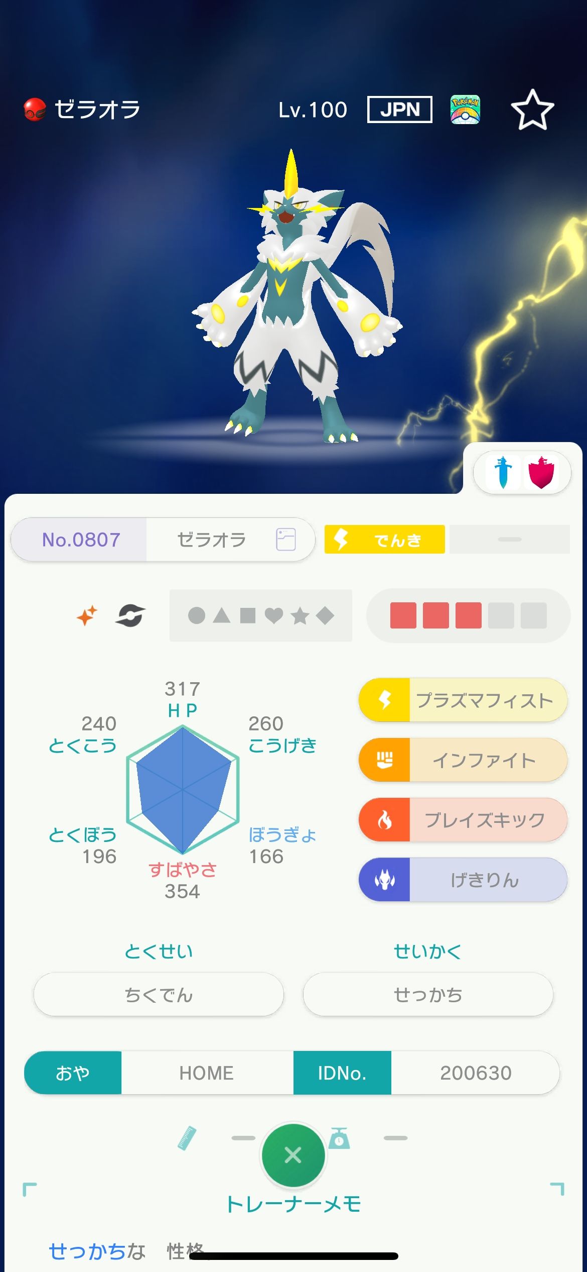 アイテム名:未移動 HOME色ゼラオラ JPN