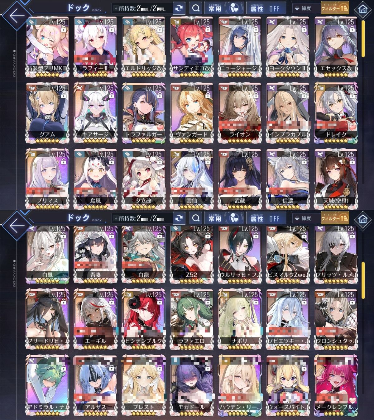 アカウント特定防止といった観点から、主なキャラクター・装備・衣装を抜粋して記載させていただいております。