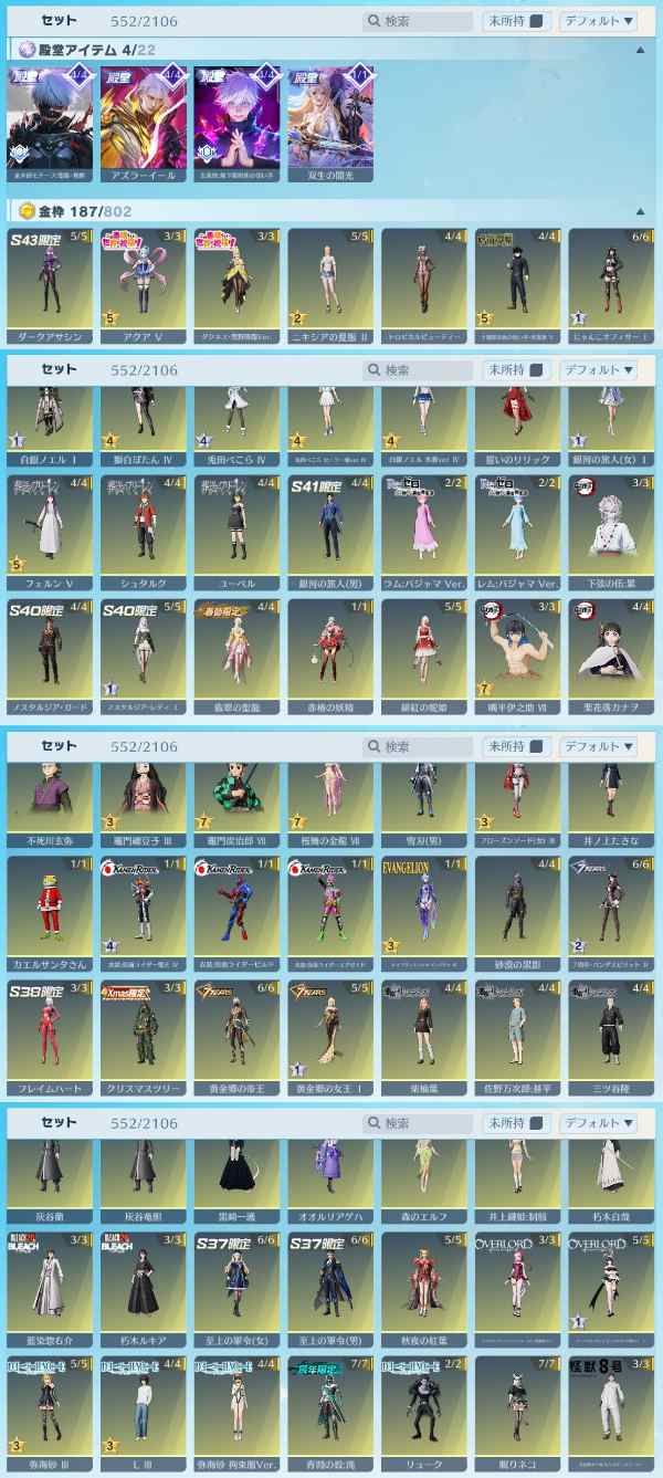 アカウント特定防止といった観点から、主なスキンを抜粋して記載させていただいております。