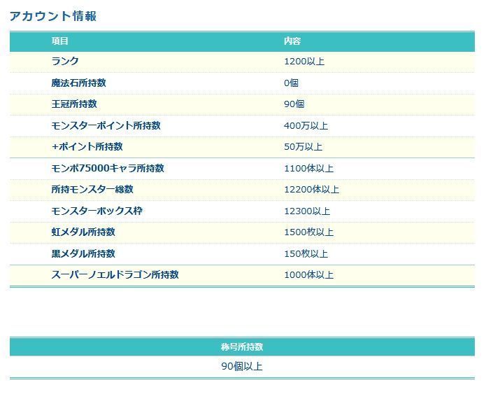 アカウント特定防止といった観点から、主なモンスターを抜粋して記載させていただいております。