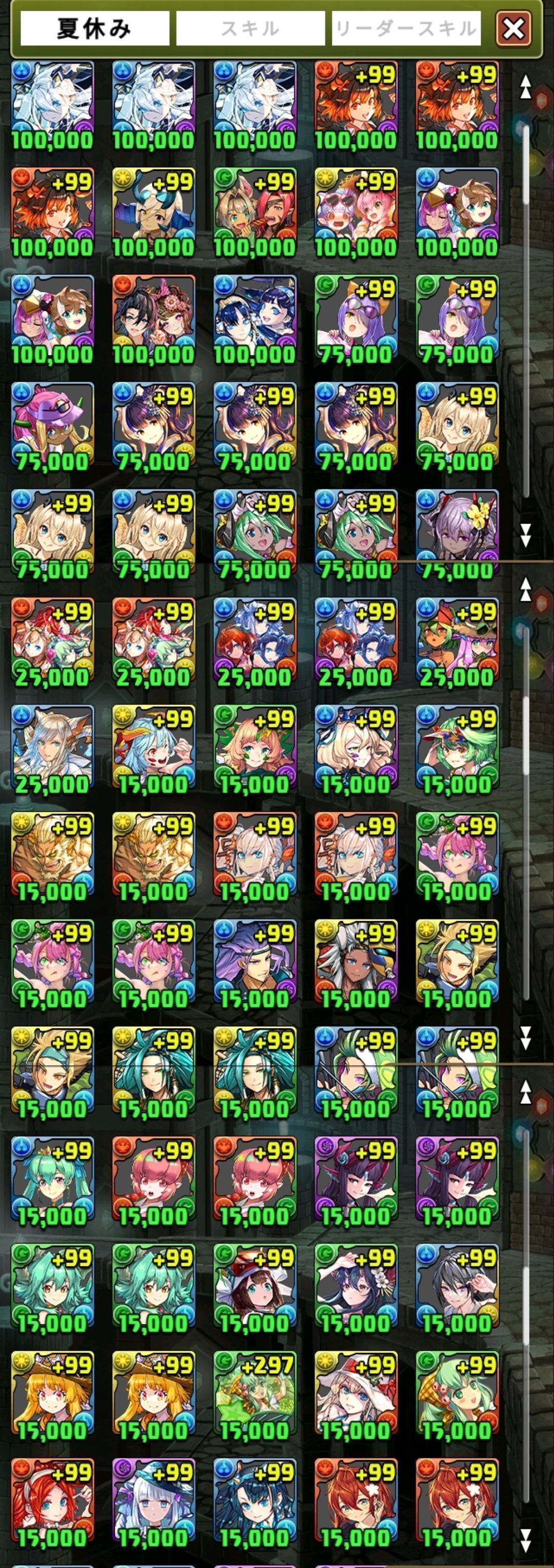 アカウント特定防止といった観点から、主なモンスターを抜粋して記載させていただいております。