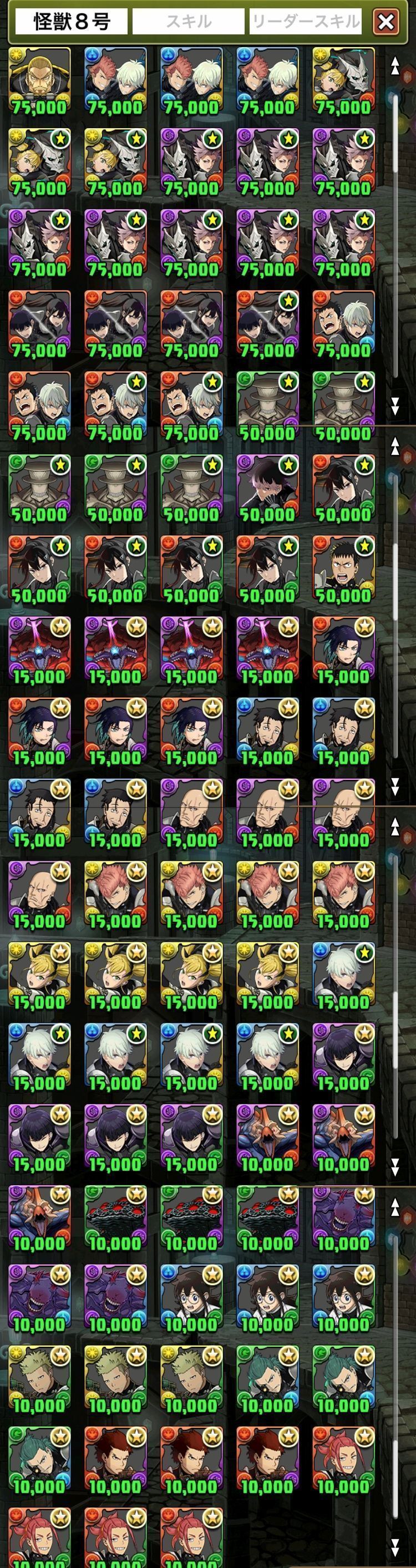 アカウント特定防止といった観点から、主なモンスターを抜粋して記載させていただいております。