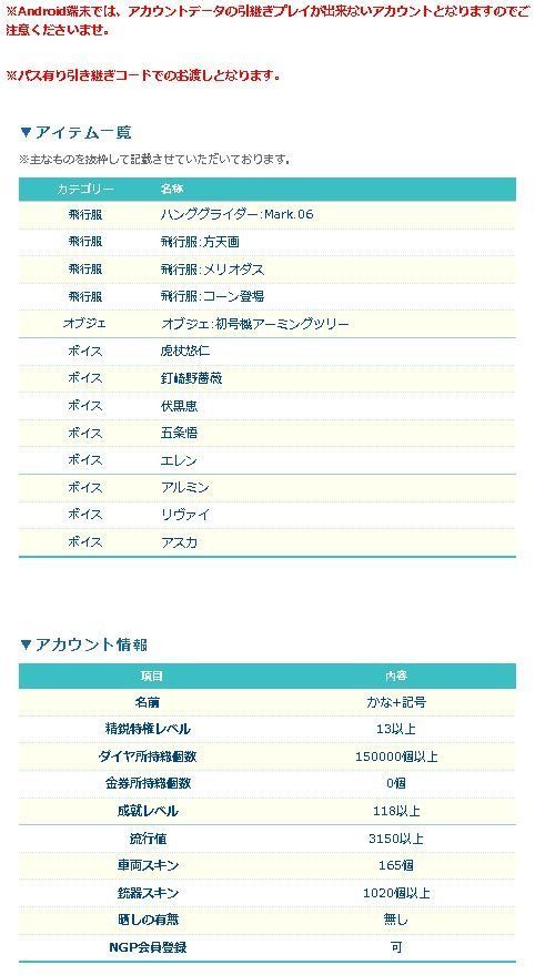 引退した一般プレイヤーから、直接マツブシが買取した廃課金アカウントとなります!