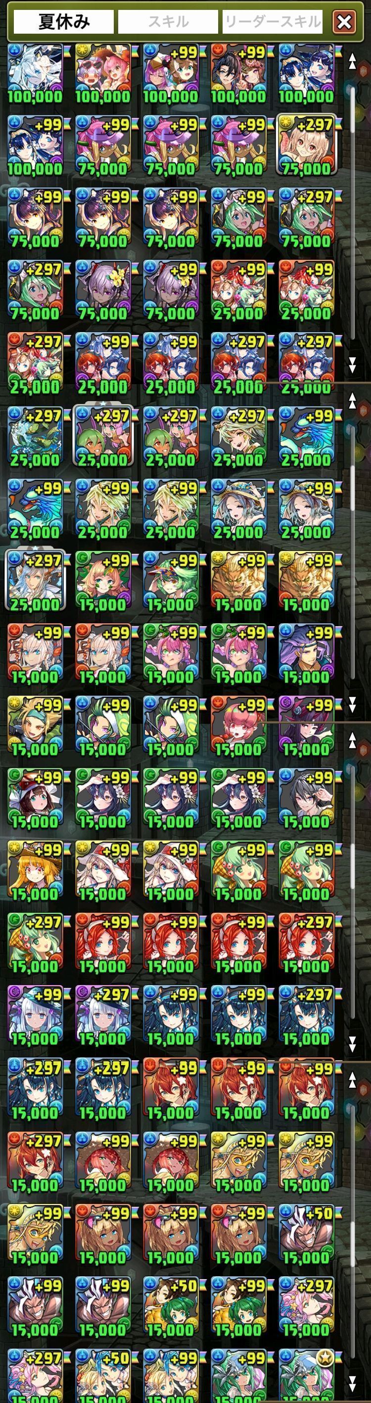 アカウント特定防止といった観点から、主なモンスターを抜粋して記載させていただいております。