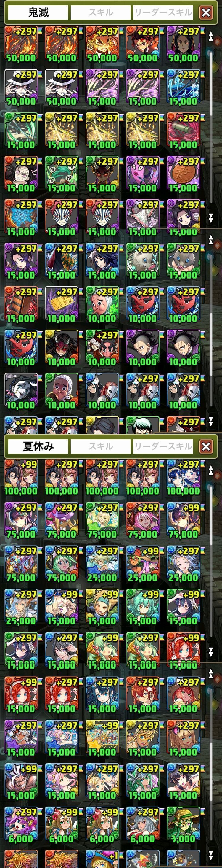アカウント特定防止といった観点から、主なモンスターを抜粋して記載させていただいております。