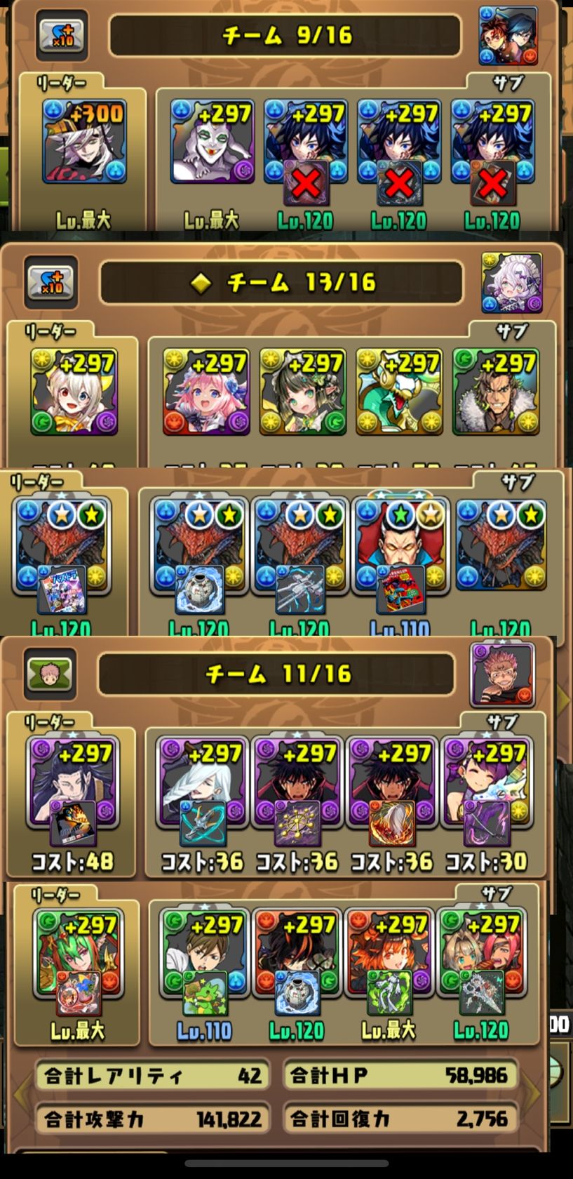 特筆ポイント:カフカ、童磨、グラビス、イデアル等現環境最強クラスのリーダー、MP9,999,999