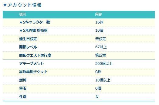 下記のようなキャラクター・光円錐を所持しております。(一部抜粋)