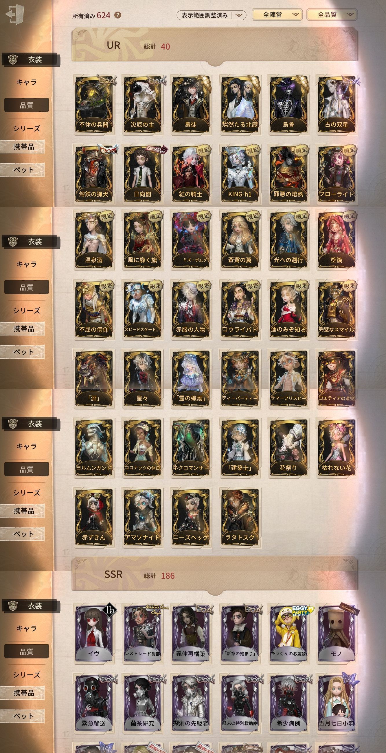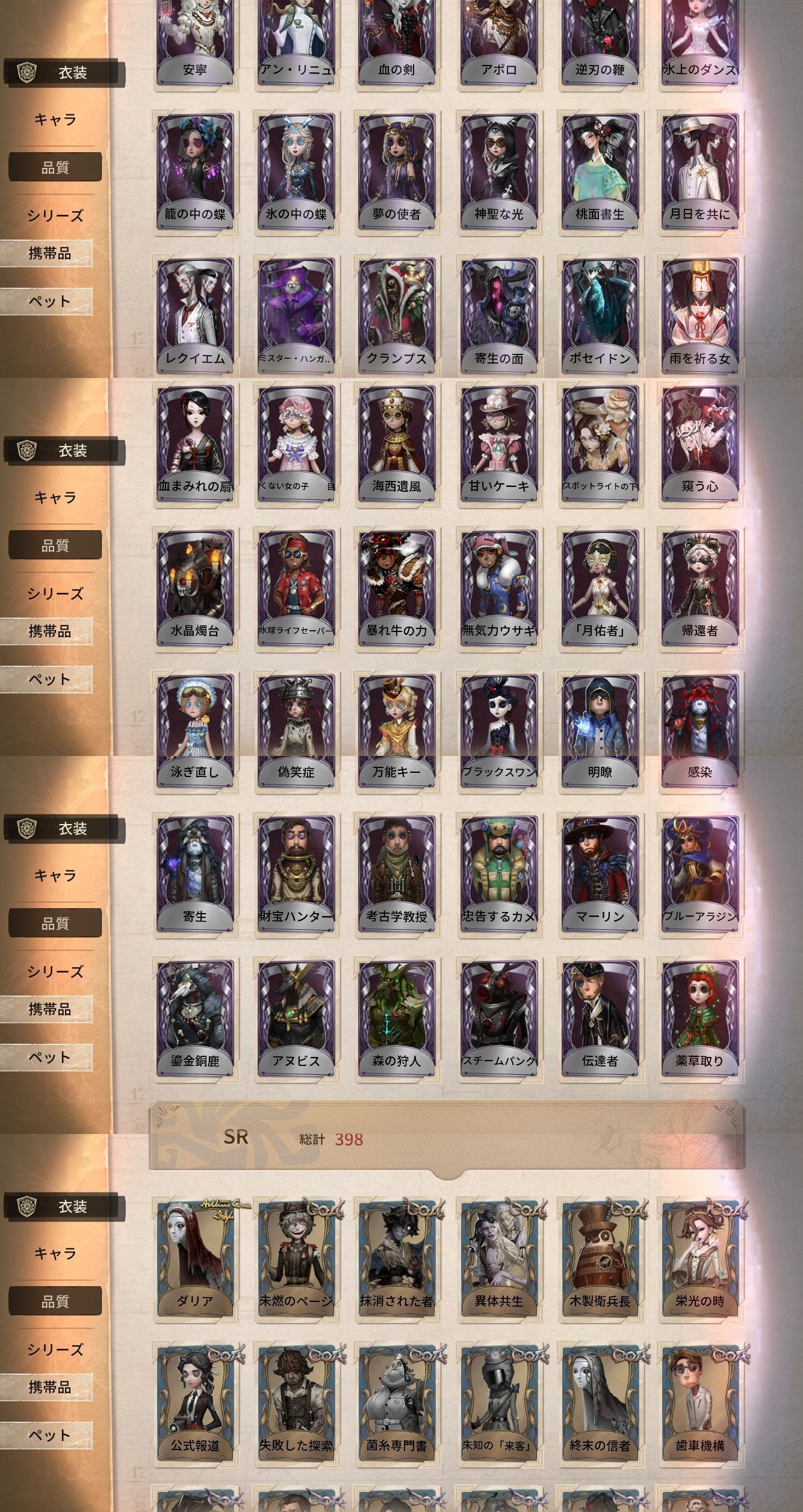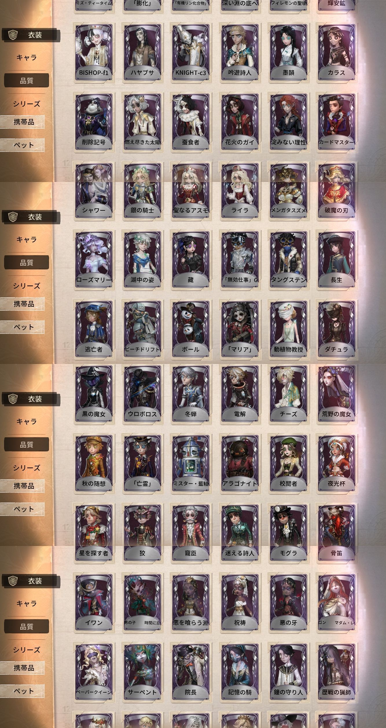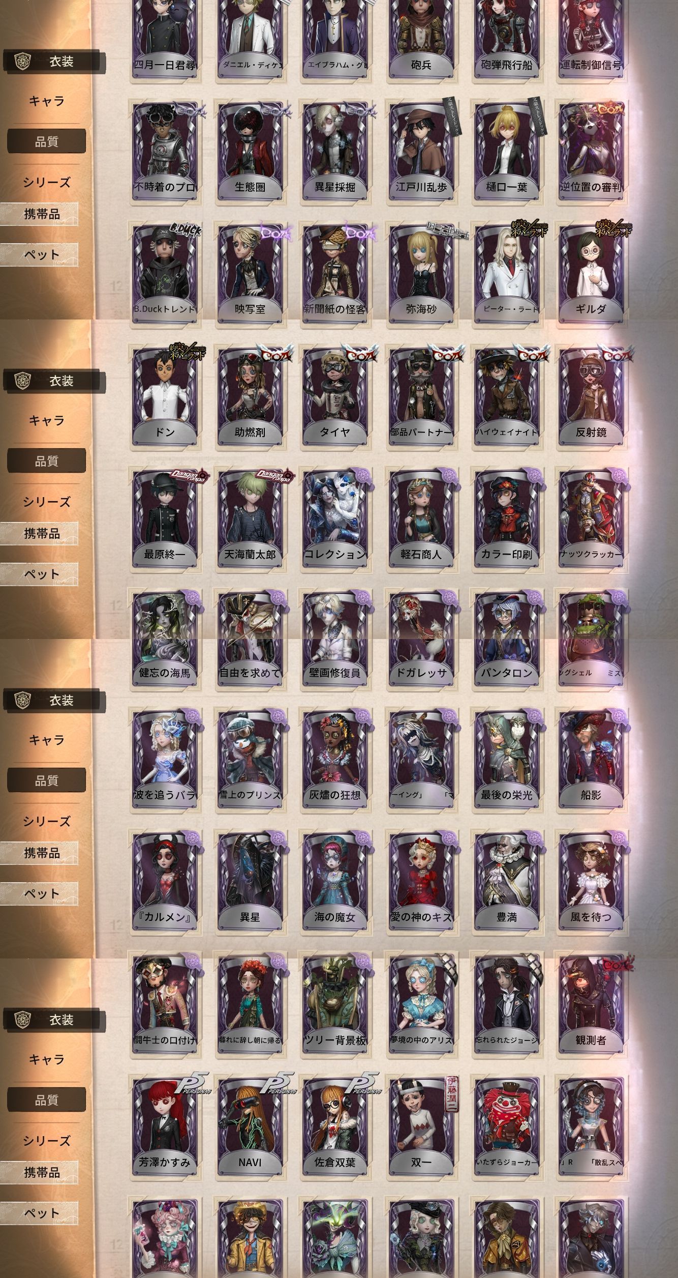 アカウント特定防止といった観点から、主な衣装を抜粋して記載させていただいております。
