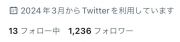 [フォロー数/フォロワー数]13/1,036