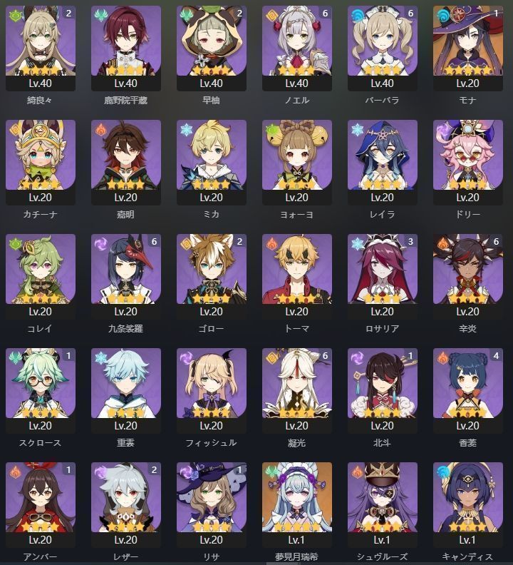 下記のようなキャラクター・武器を所持しております。(一部抜粋)