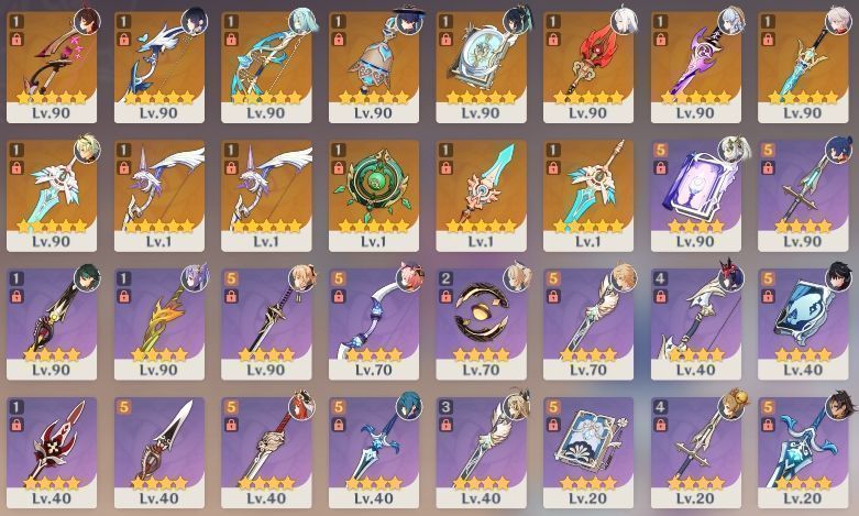 下記のようなキャラクター・武器を所持しております。(一部抜粋)