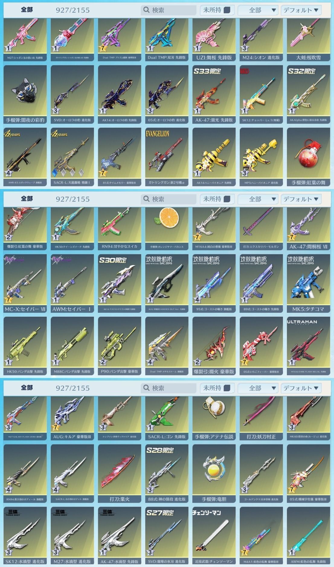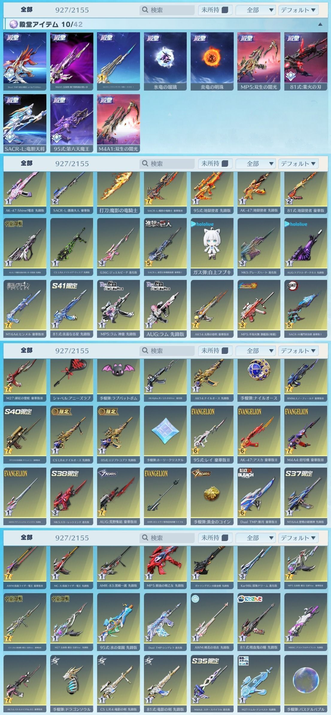 熾火:炎華 森羅万象:第六天魔王 世界:双生の闇光 M4A1:五条悟・無下限呪術の使い手 M4A1:双生の闇光 SACR-L:リキバノダンガン SACR-L:竜胆天将 95式:第六天魔王 MP5:双生の闇光 81式:業火の刃 Dual TMP:双生の闇光 レイ&アスカVer. 氷竜の瑠璃 炎竜の明珠 呪いの王・両面宿儺 双生の闇光