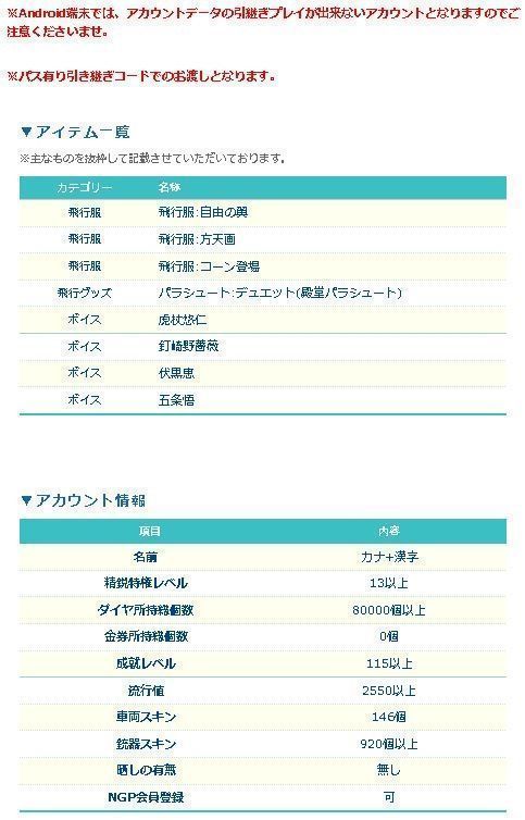 引退した一般プレイヤーから、直接マツブシが買取した廃課金アカウントとなります!