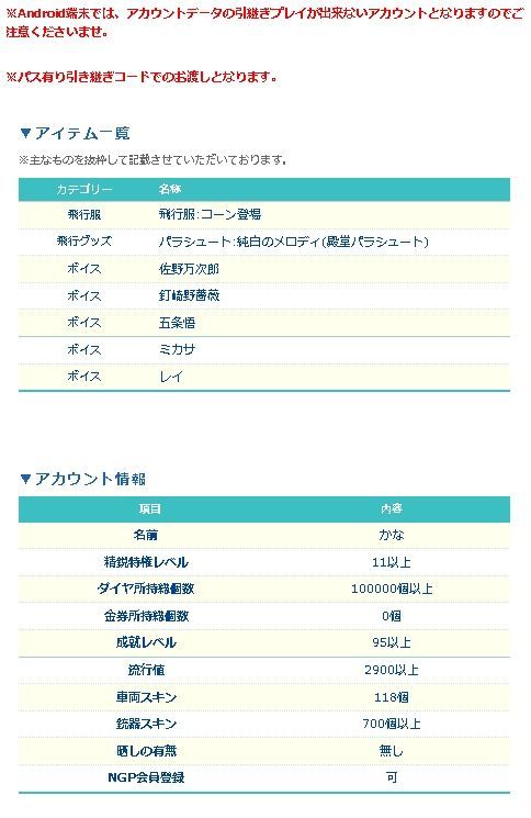 引退した一般プレイヤーから、直接マツブシが買取した廃課金アカウントとなります!