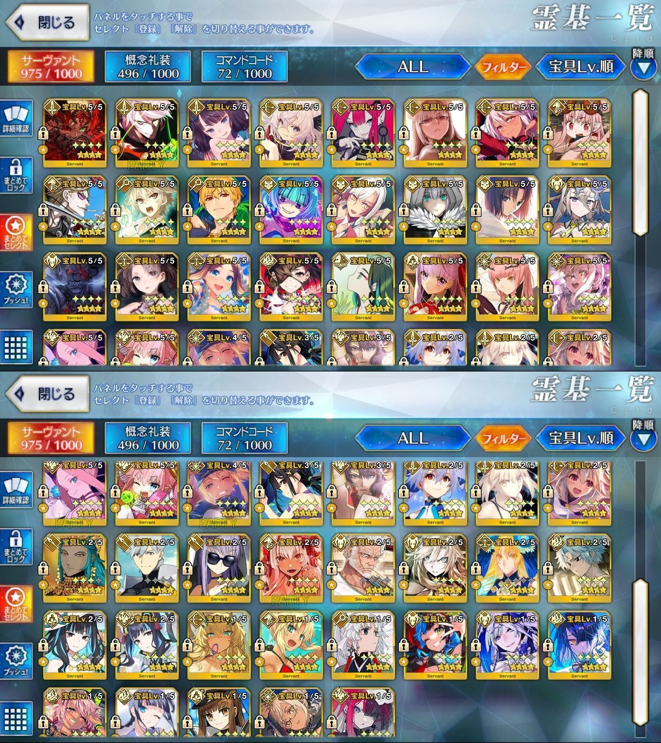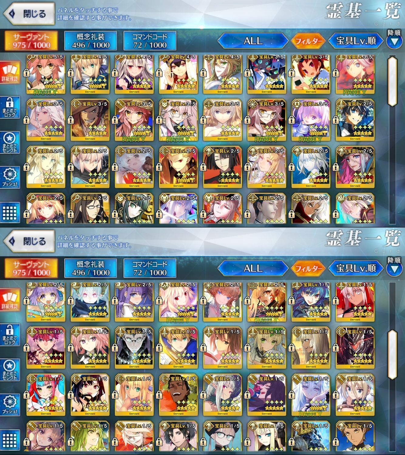 重複分は宝具強化に使用しているため、累計入手数=★5サーヴァントの宝具レベル合計値となります。
