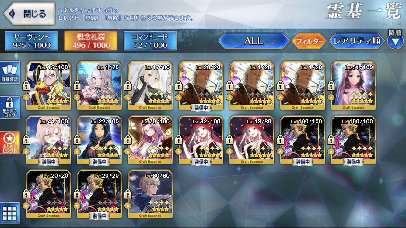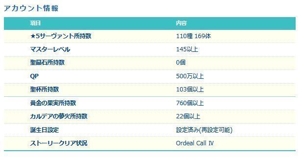 星5サーヴァントの数は累計入手数です。