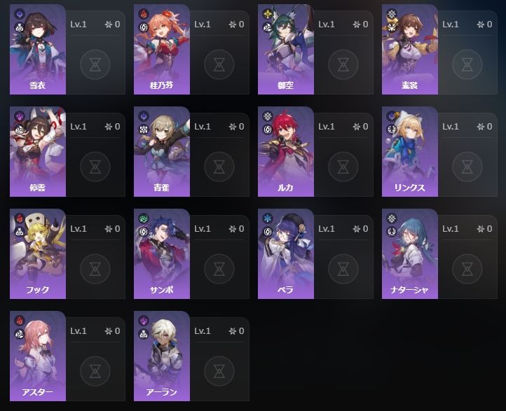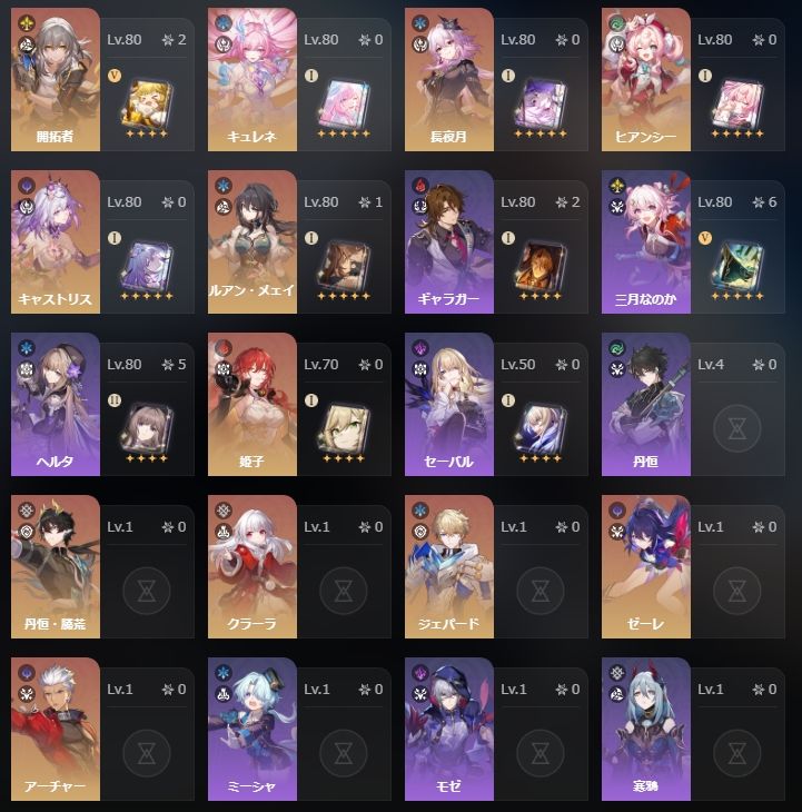 Lv4のたんこう(チュートリアルレベルアップのため必ずLv4になる)とLv1のキャラは軌跡もすべて未育成の状態です