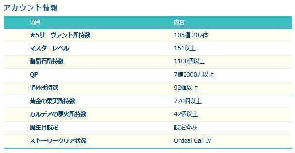アカウント特定防止といった観点から主なサーヴァントを抜粋して掲載しております。
