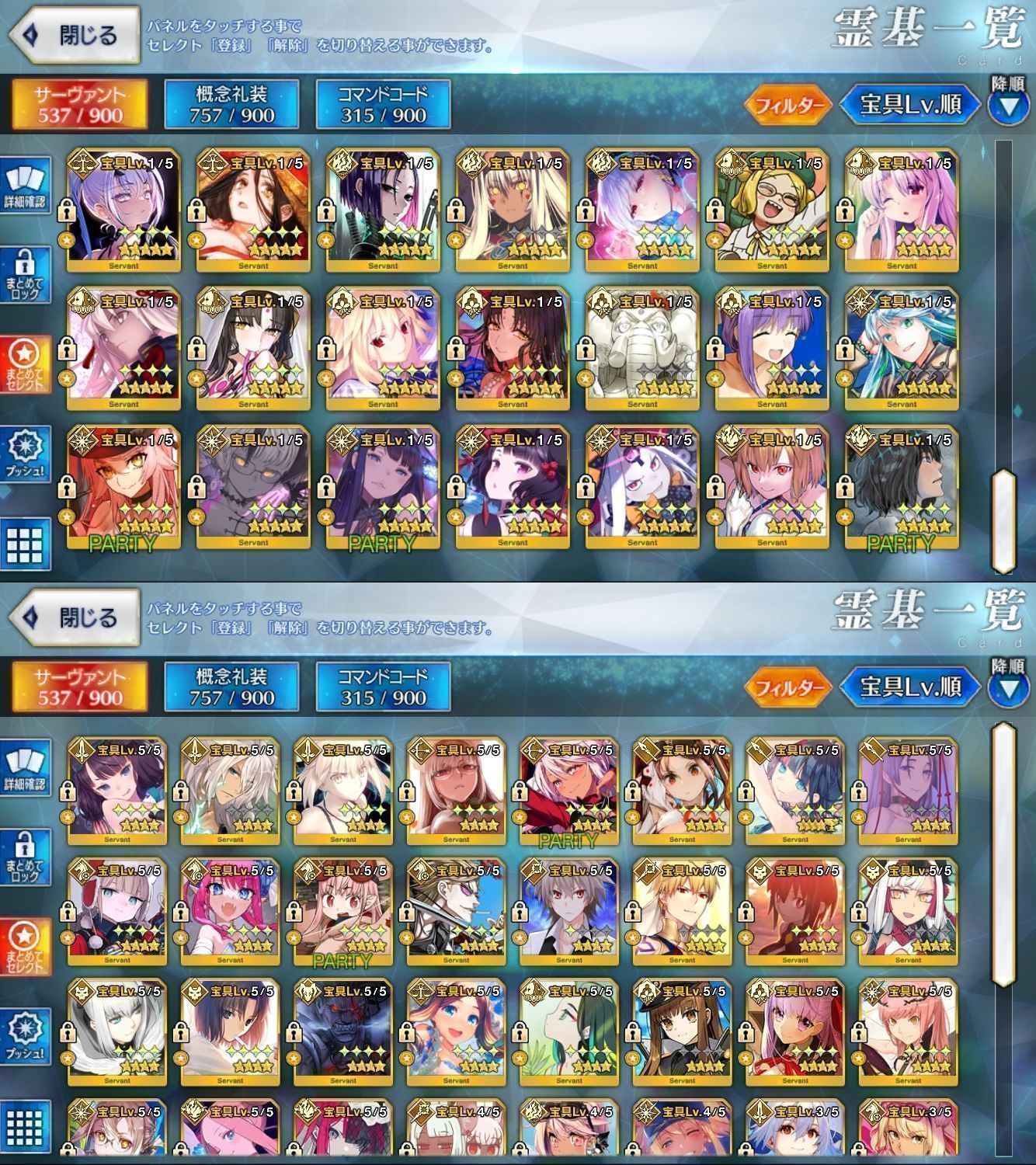 重複分は宝具強化に使用しているため、累計入手数=★5サーヴァントの宝具レベル合計値となります。