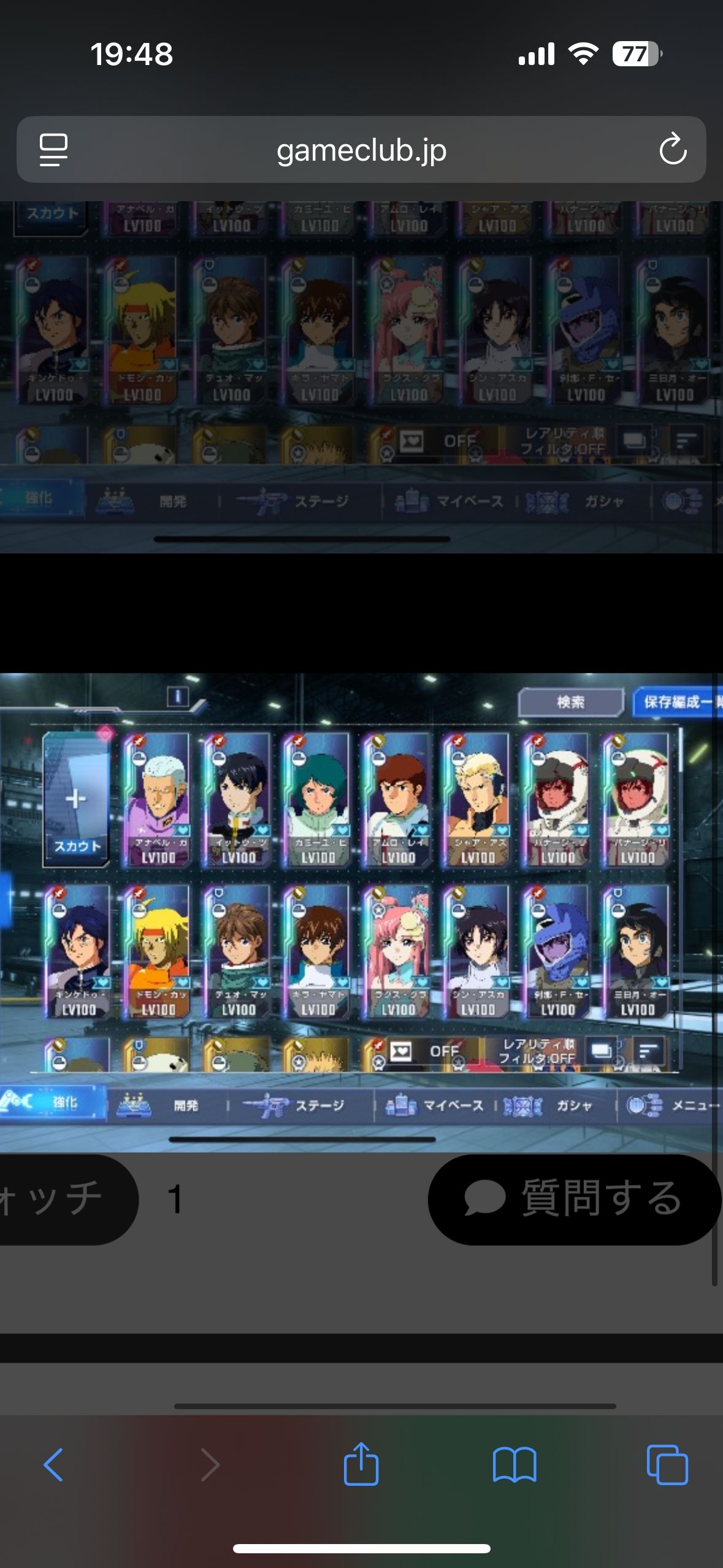 ハフバキャラ、zガンダムなど高火力機体揃ってます。凸は多くないですが高難易度のステージも問題無くクリアできます。gジェネタワーも20階まで攻略済みです。