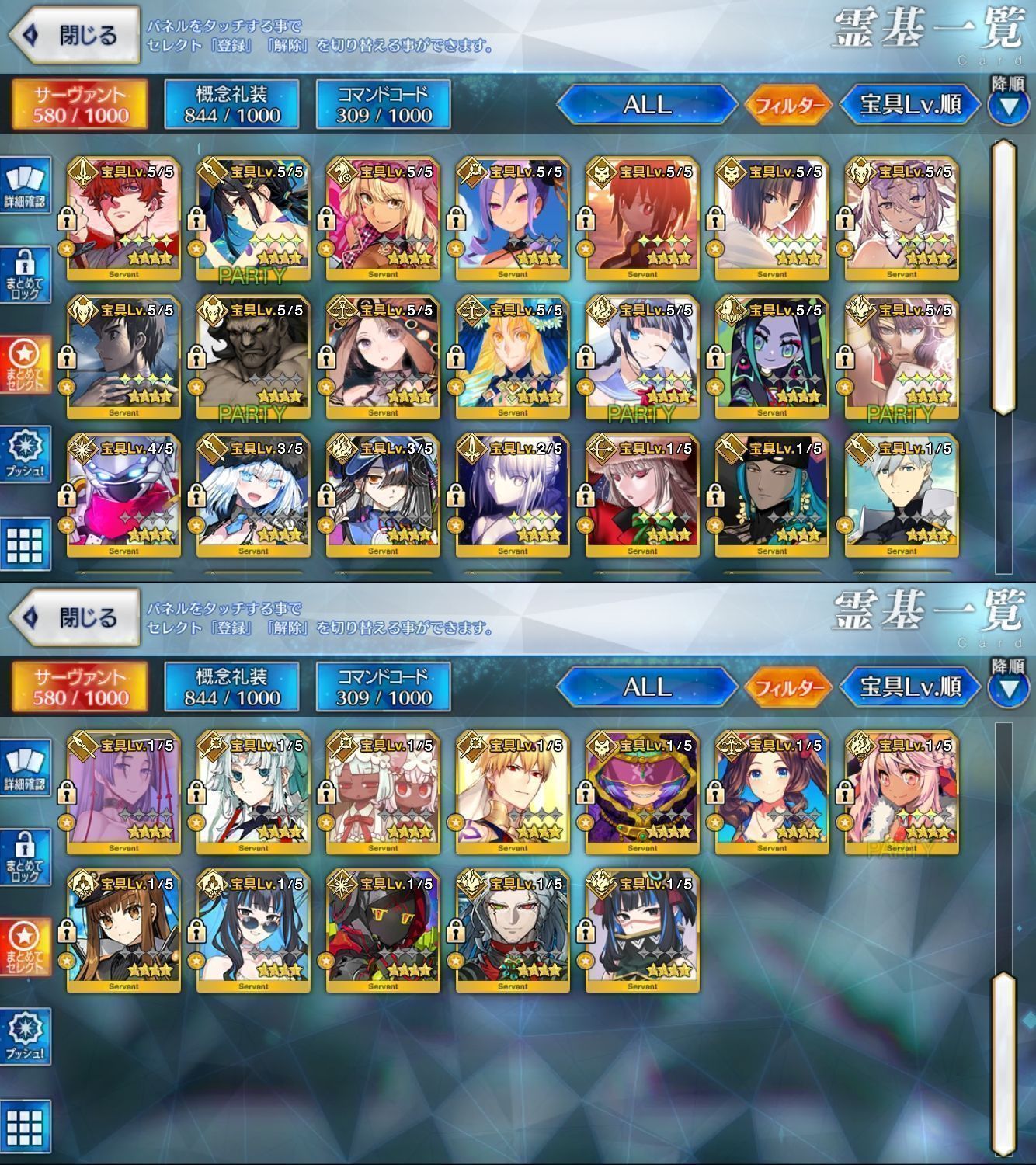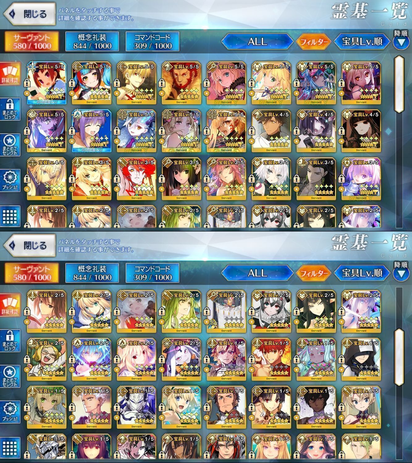 重複分は宝具強化に使用しているため、累計入手数=★5サーヴァントの宝具レベル合計値となります。