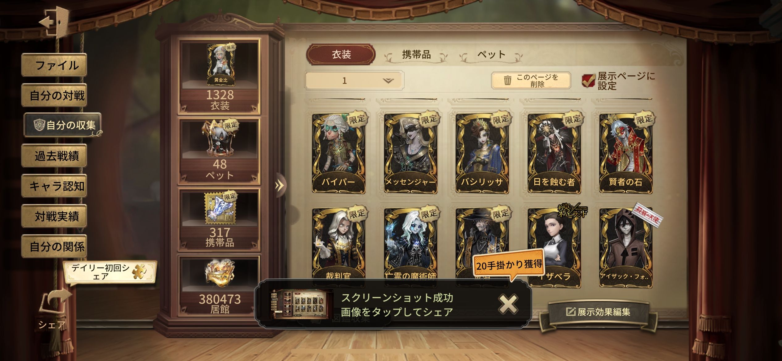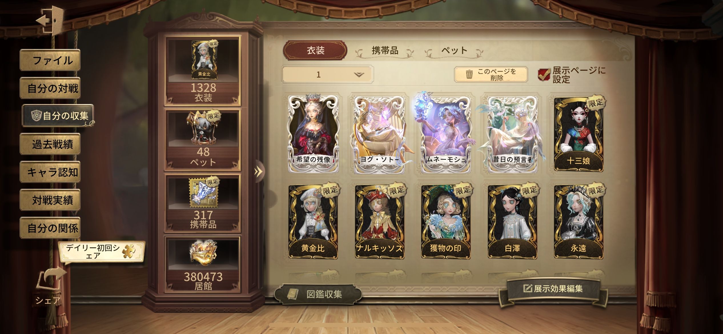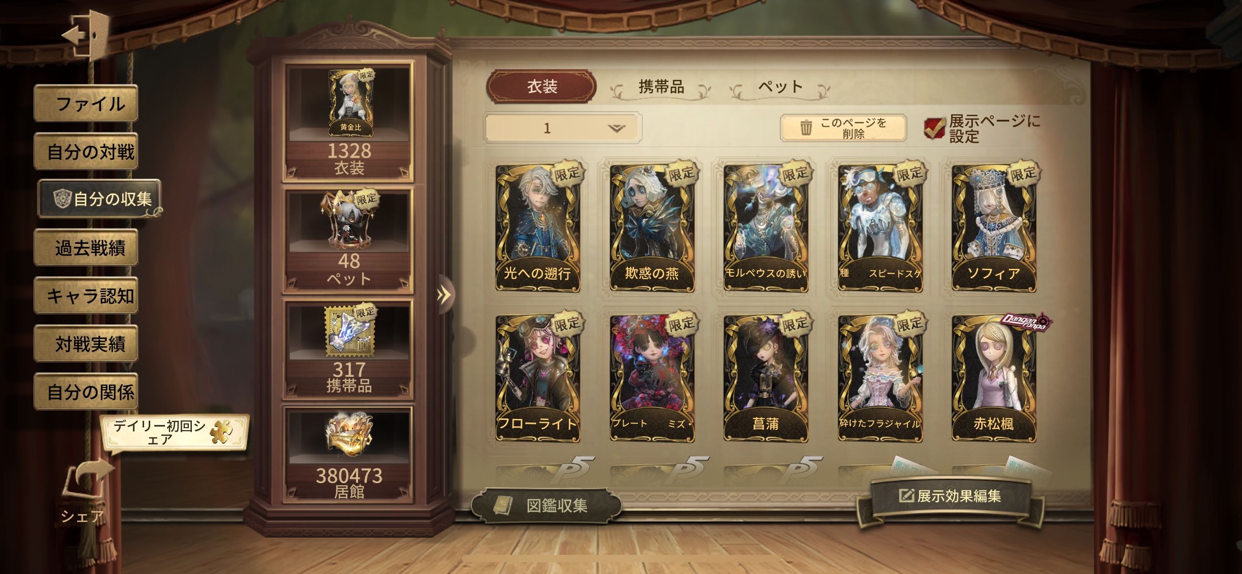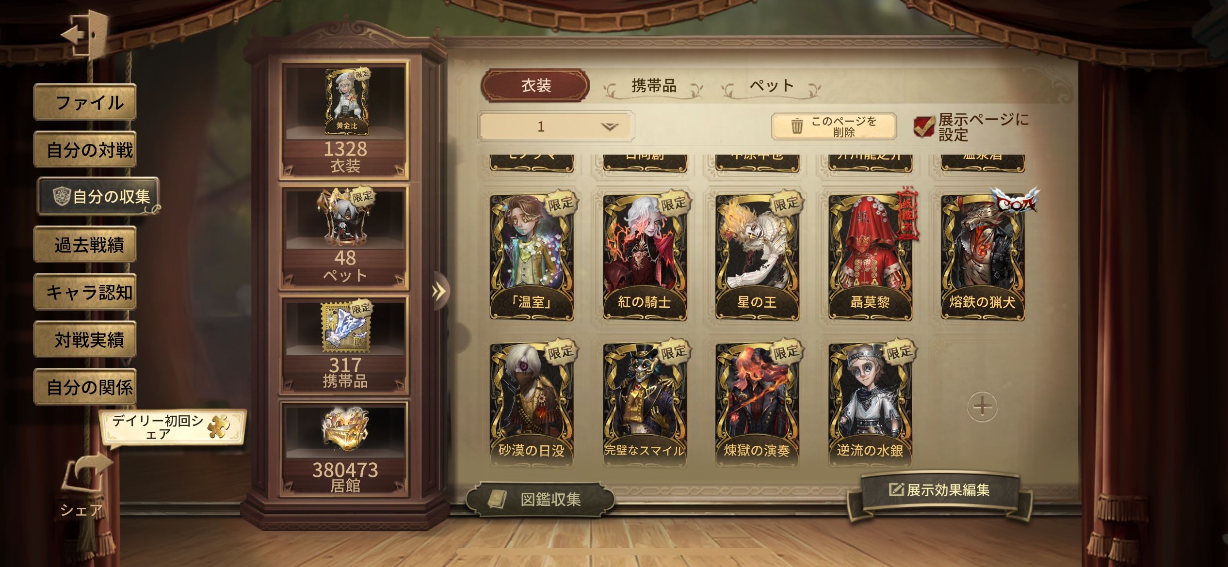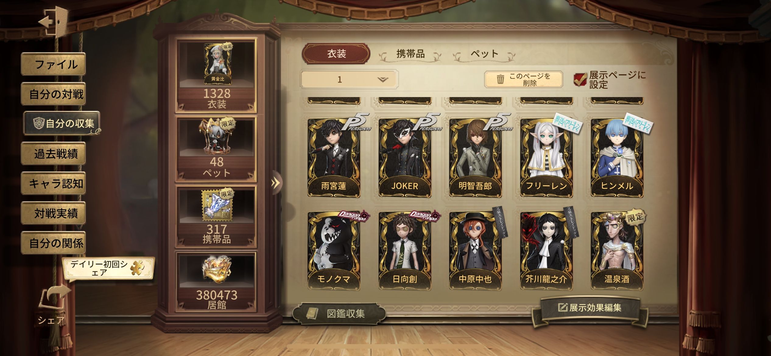 バイパー 日を蝕む者 賢者の石、 裁判官 亡霊の魔術師 十三娘 砂漠の日没 欺惑の燕 白澤 メッセンジャー 煉獄の演奏 バシリッサ モルペウスの誘い 星の王 フローライト 紅の騎士 スピードスケート 永遠 温泉酒 希望の残像 ヨグ・ソトース ムネーモシュネーの夢 アイザック・フォースター 昔日の預言者 黄金比 ソフィア ナルキッソス 温室 獲物の印 赤松楓 日向創 モノクマ 中原中也 芥川龍之介 イザベラ 永夜のオーロラ 異界行者 古の双星 厄災の王 不休の兵器 ガット