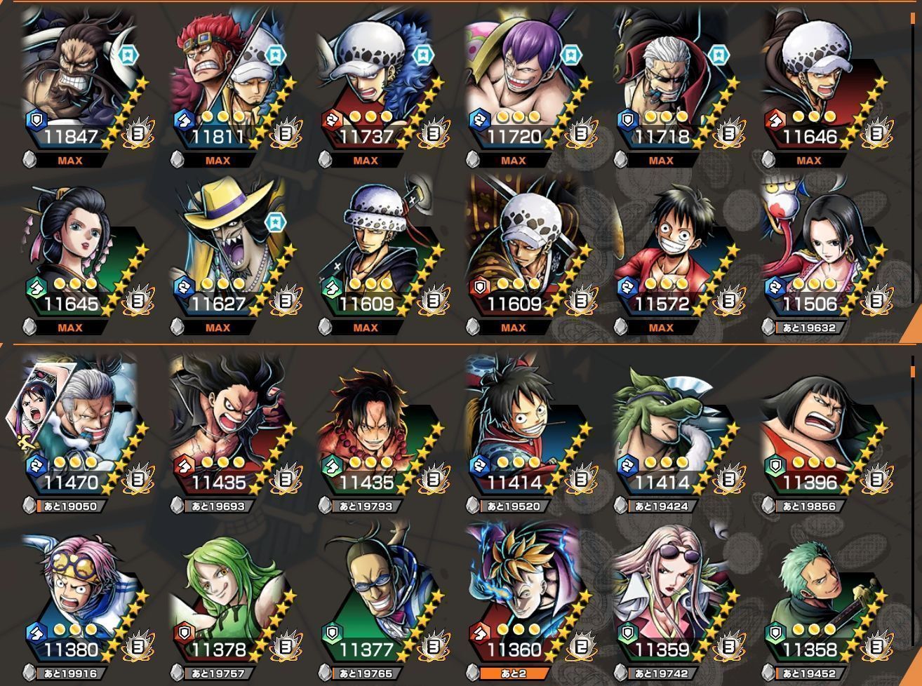 黄猿 黒ロジャー クザン 黒ガープ S-スネーク 覚醒ルッチ シャンクス(神避) サボ 緑ロジャー 赤犬 ヤマト カイドウ キッド&ロー 緑ニカ カイドウ(人獣) ゾロ(閻魔) 白ひげ エース&ヤマト シャンクス(RED) 黒ひげ シャンクス(四皇) 花魁おリン ヤマト(人獣) ビッグ・マム ゼファー 光月おでん