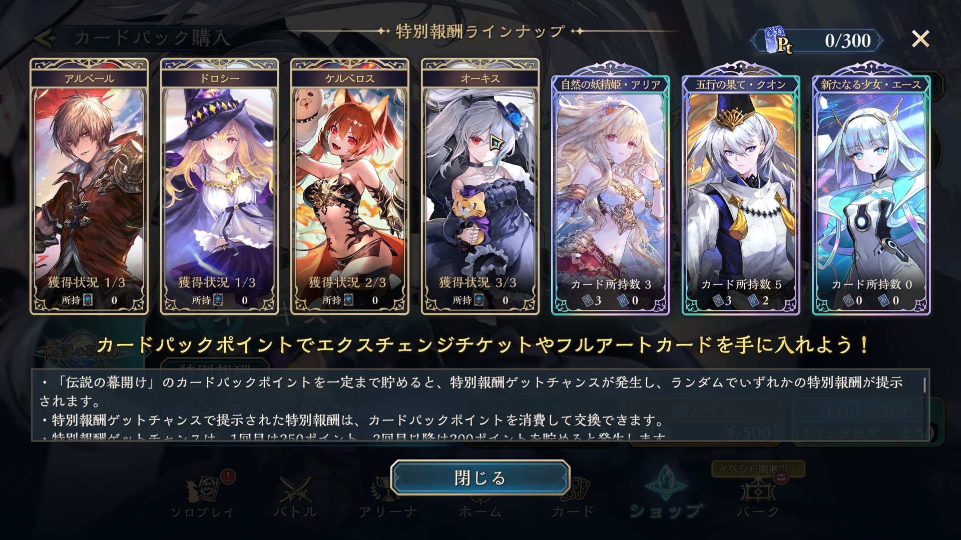 第一弾:オーキス×3,ケルベロス×2,ドロシー×1,アルベール×1 (エース×1)