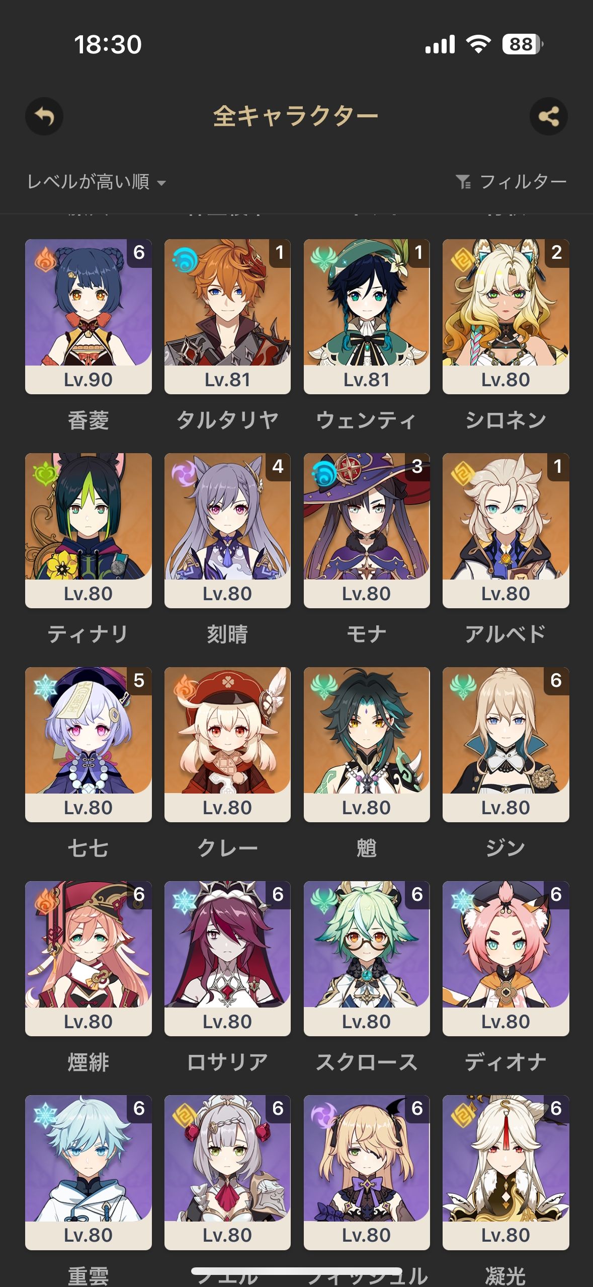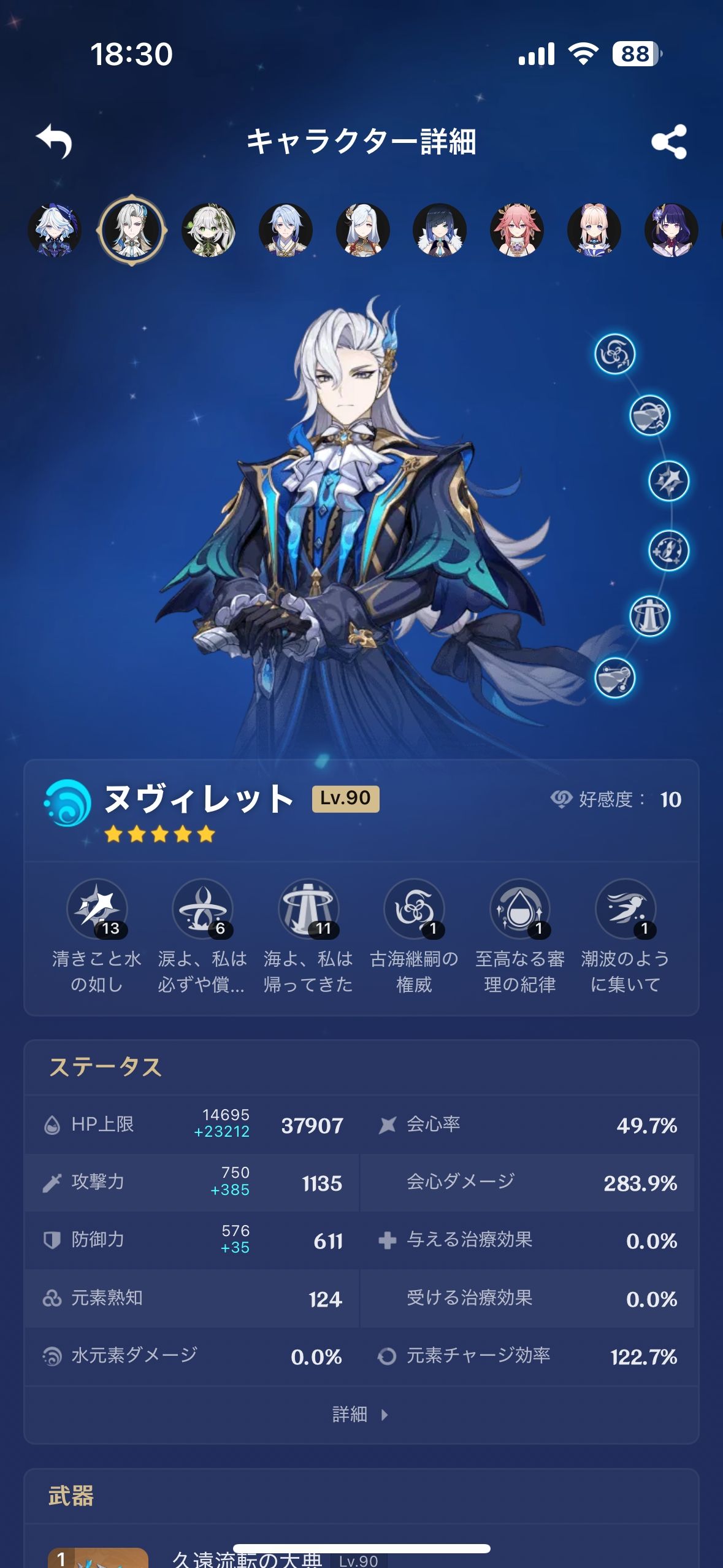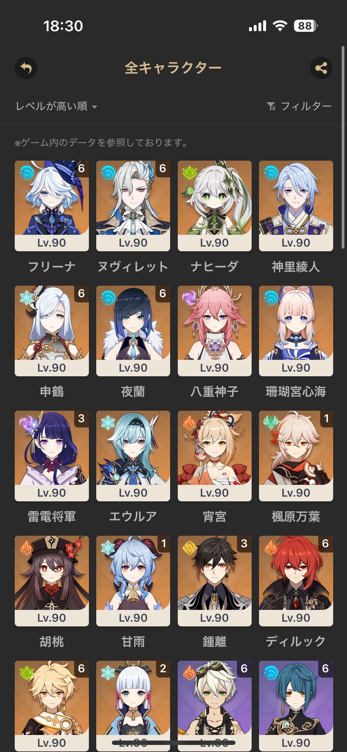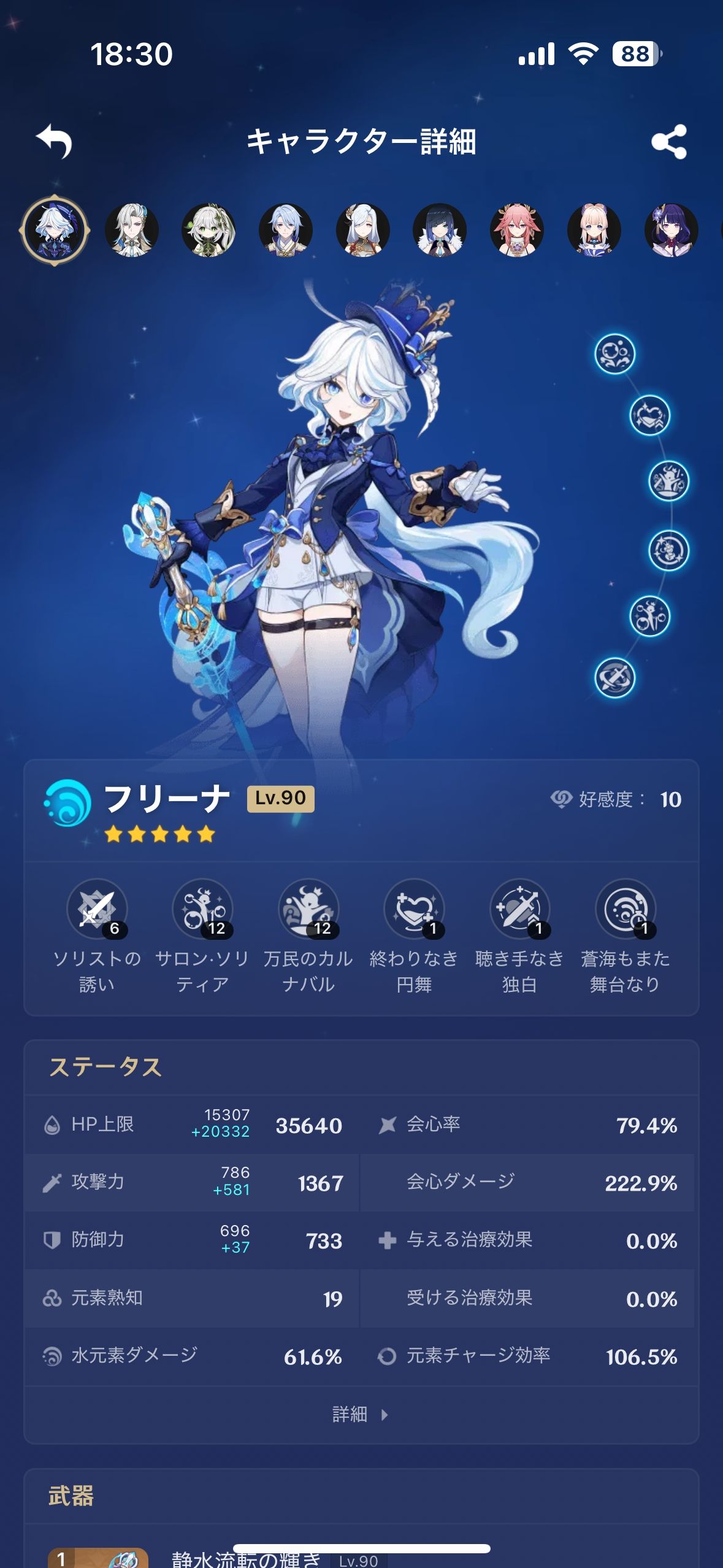 完凸:フリーナ、ヌヴィレット、夜蘭、申鶴、ディルック、ジン