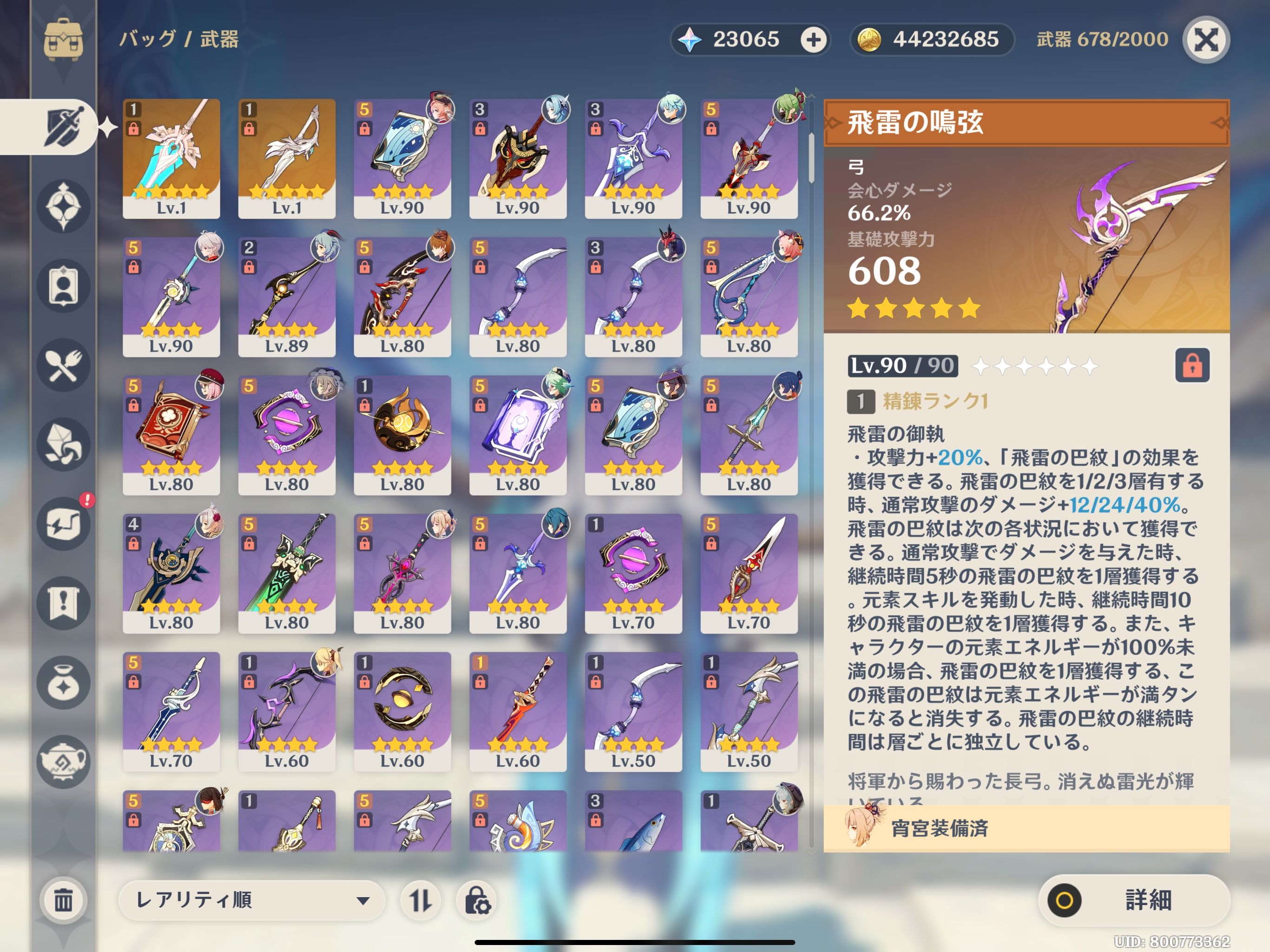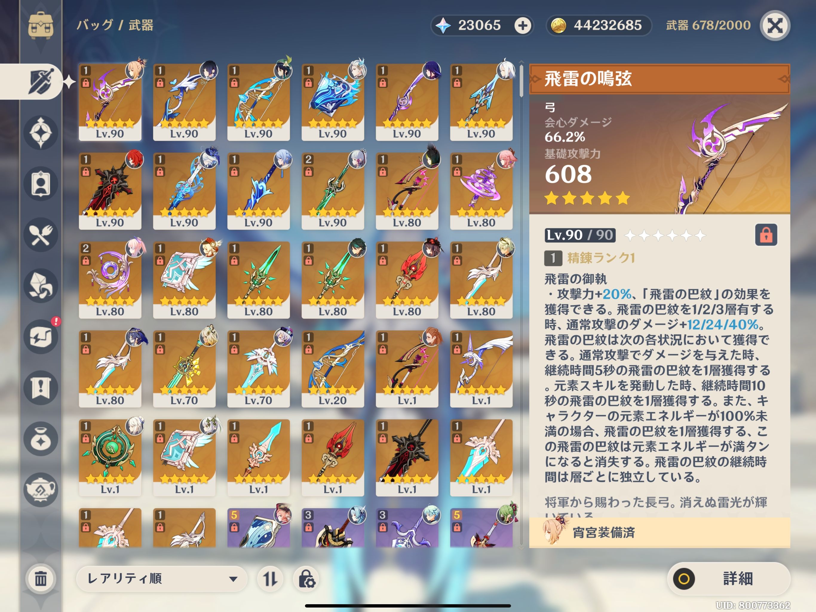 ございますので、新キャラ・武器などもすぐに引けるアカウントとなっております。