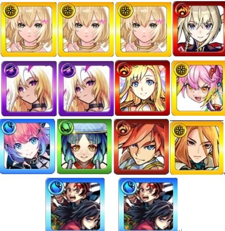 エル×3+ルシファー×2+マサムネ+マナ+逆鱗+久遠+八雲+エクスカリバー+キリンジ+炭治郎&義勇×2+オーブ3070石、合計限定22体 +★5★6キャラ160