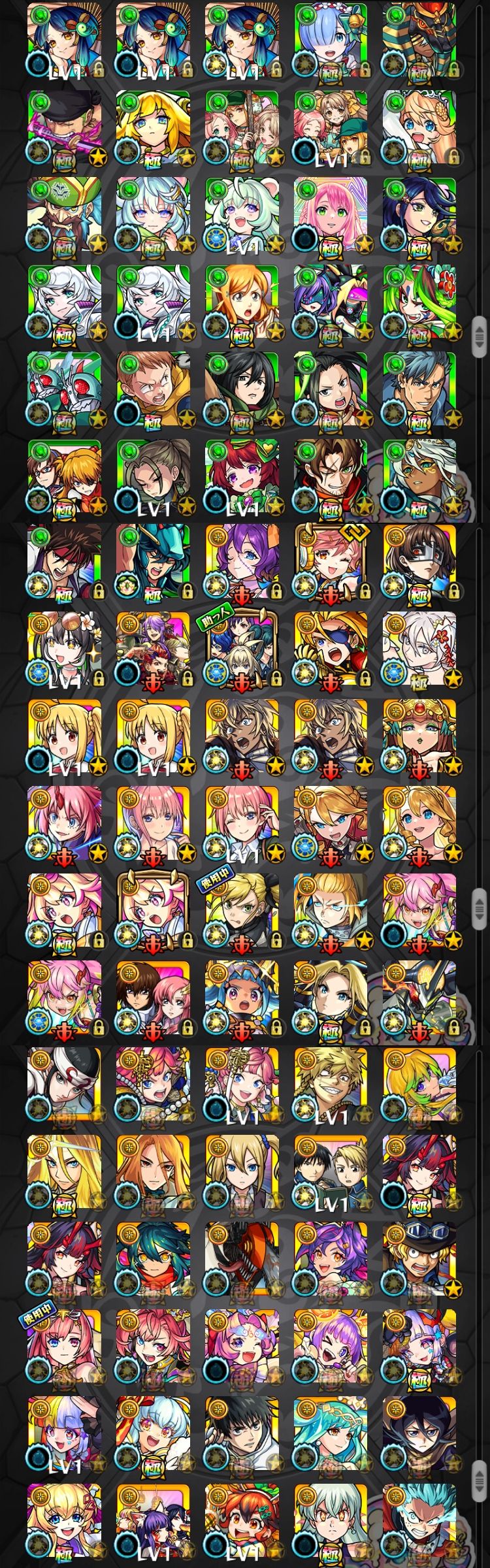 アカウント特定防止といった観点から、主なモンスターを抜粋して記載させていただいております。
