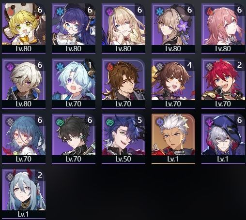 下記のようなキャラクター・光円錐を所持しております。(一部抜粋)
