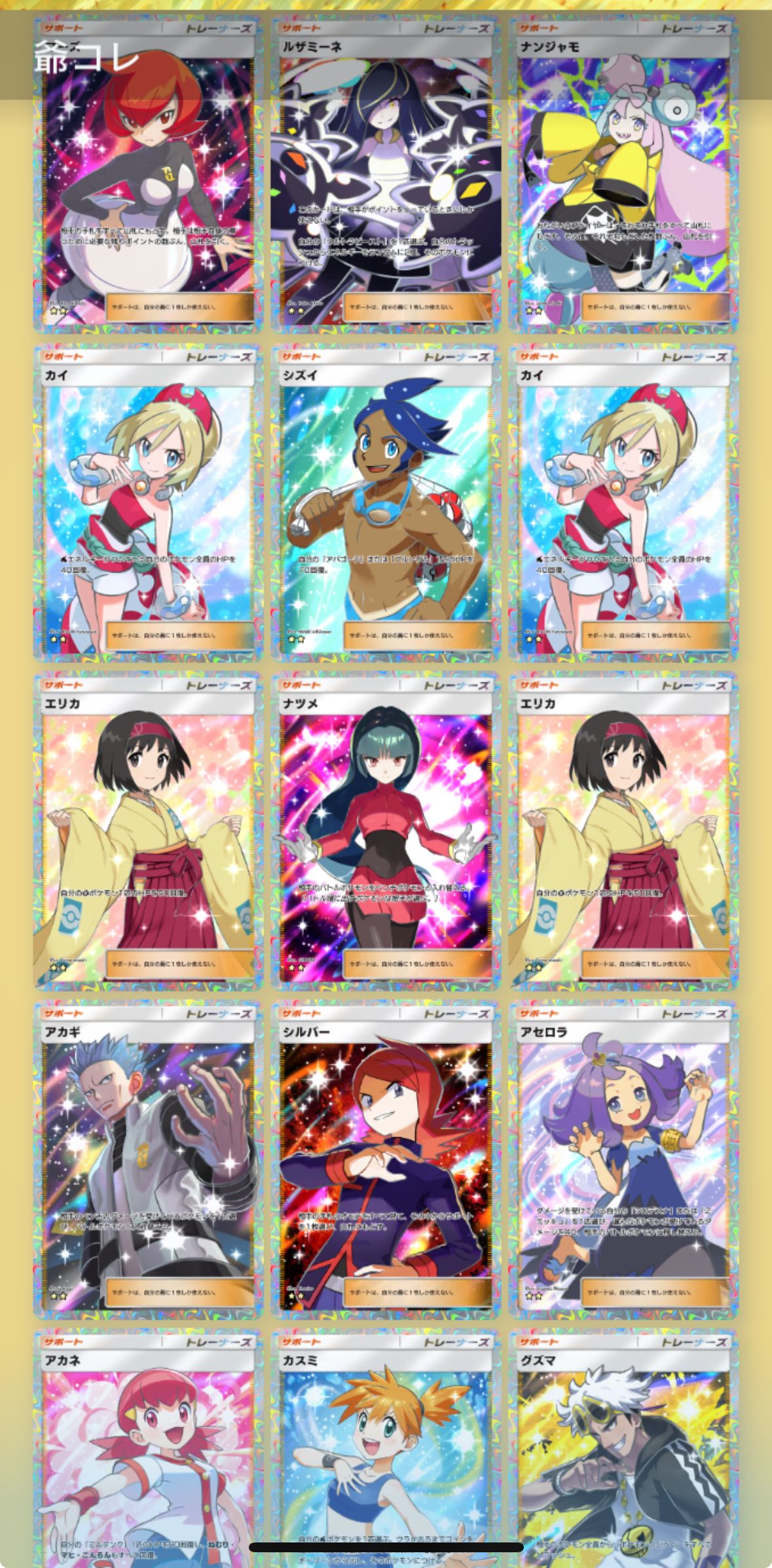 対戦でも使用頻度が高いマーズ、アカギ、ナツメも所持