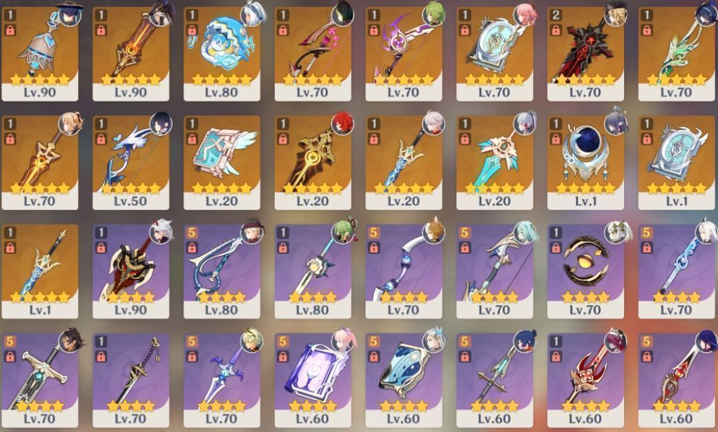 下記のようなキャラクター・武器を所持しております。(一部抜粋)