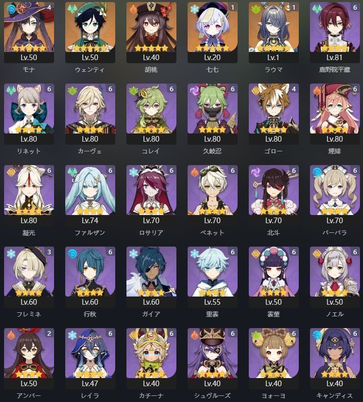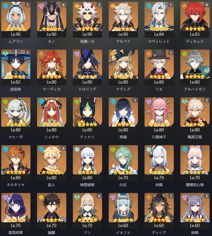 下記のようなキャラクター・武器を所持しております。(一部抜粋)