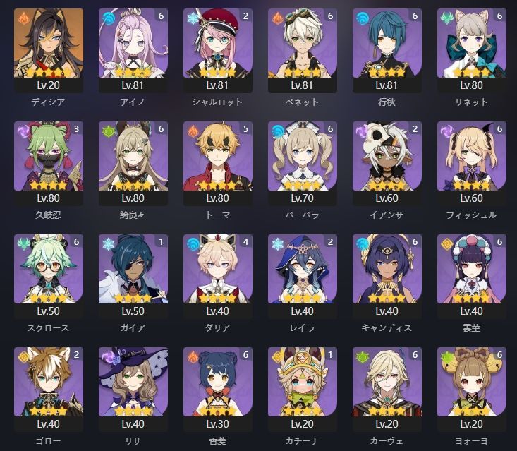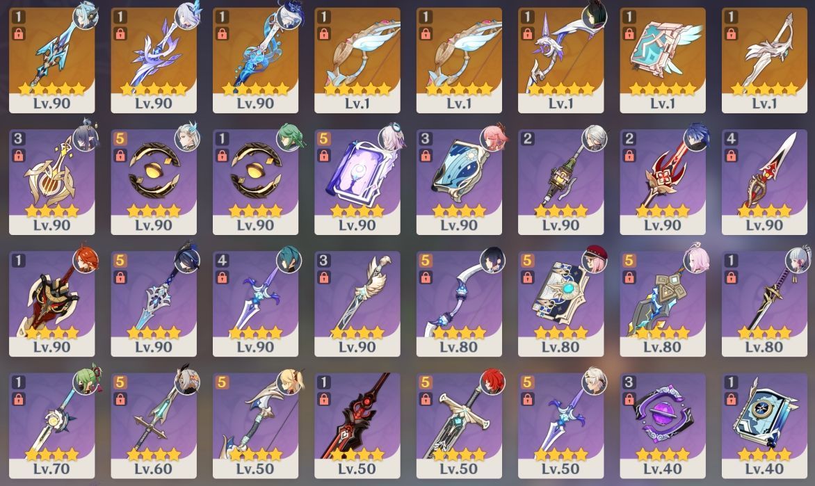 下記のようなキャラクター・武器を所持しております。(一部抜粋)
