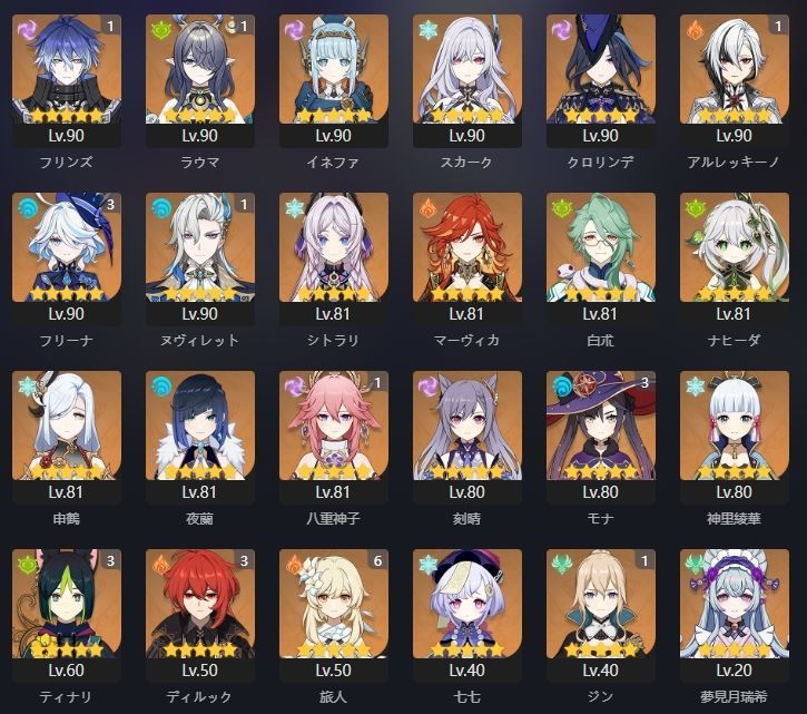 フリンズ ラウマ イネファ スカーク マーヴィカ シトラリ クロリンデ アルレッキーノ フリーナ ヌヴィレット ナヒーダ 夜蘭 八重神子 申鶴 蒼耀 静水流転の輝き 息災