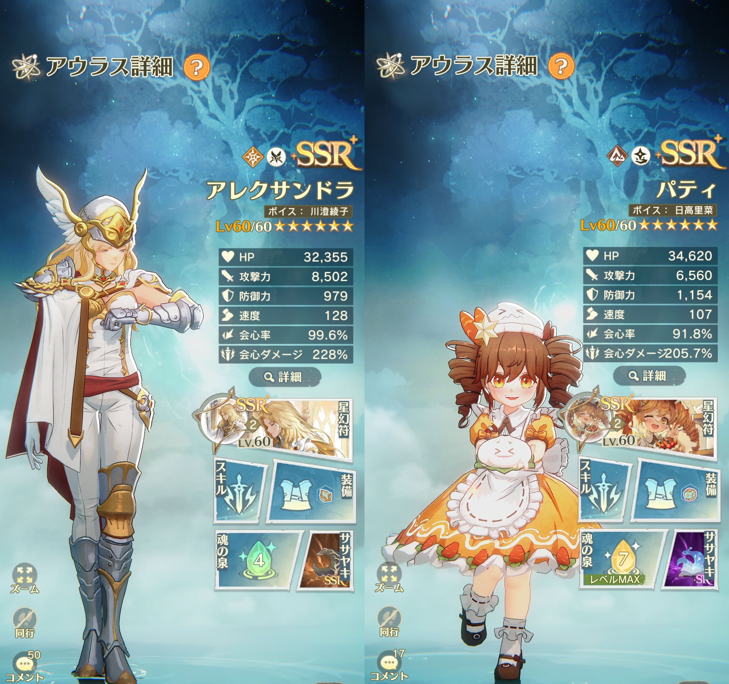 所持キャラクター、星幻符、その他アイテム(抜粋)は画像の通りです。