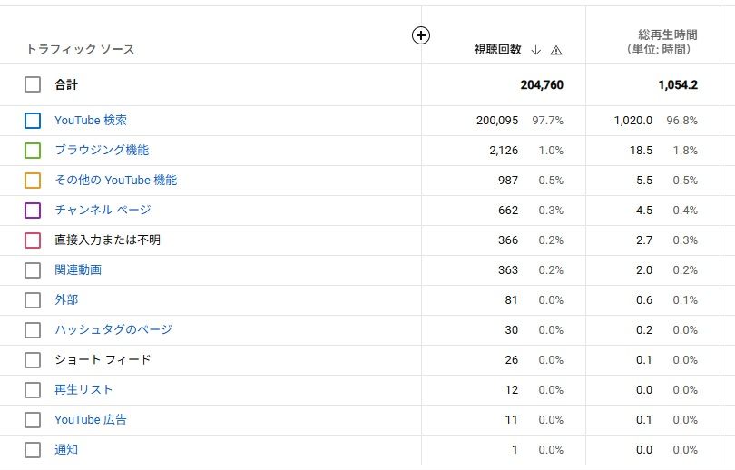 加えまして、運営開始後1本目の動画は、キーワード検索が主な流入元となりますが、この段階では再生回数が低いです。