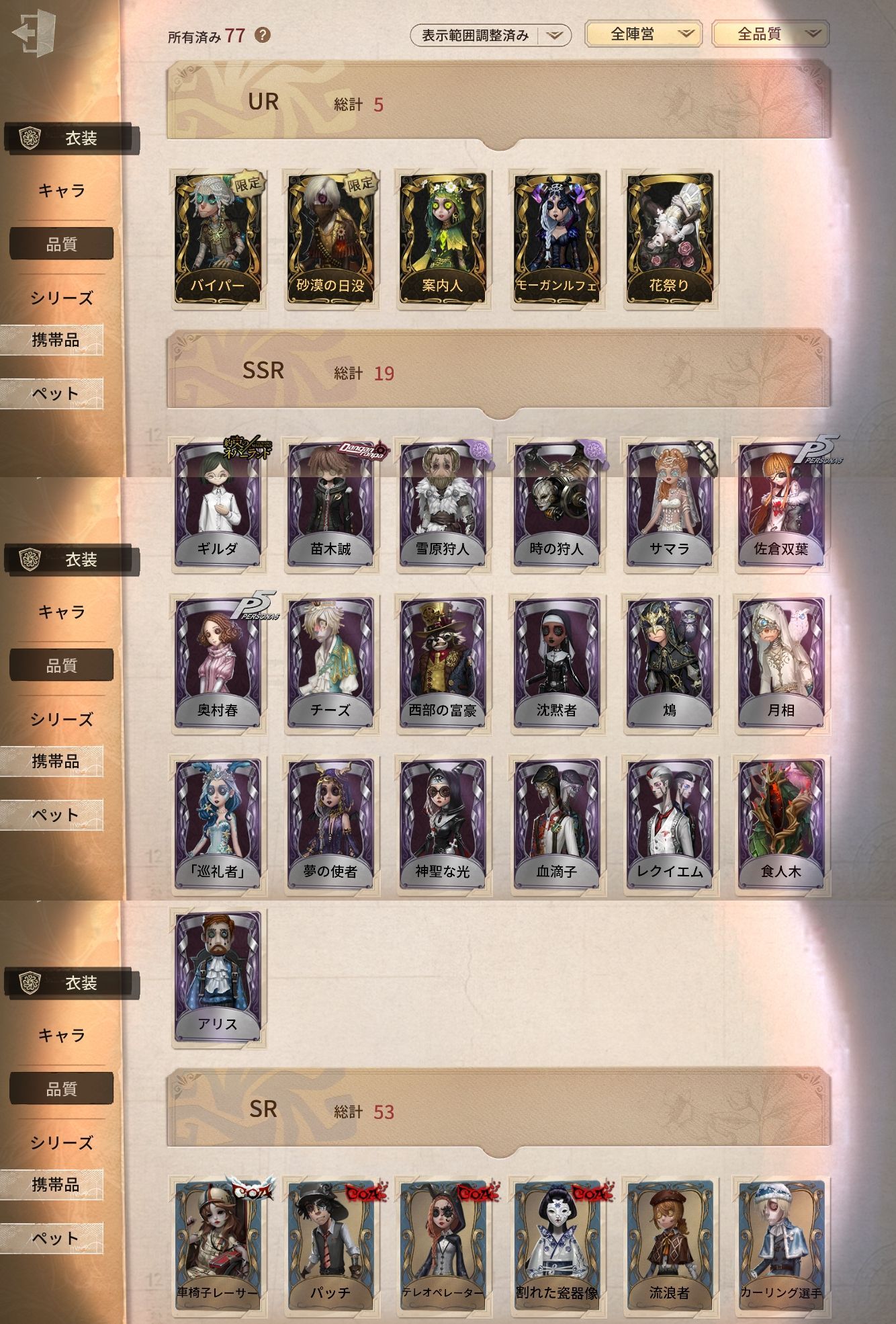 アカウント特定防止といった観点から、主な衣装を抜粋して記載させていただいております。