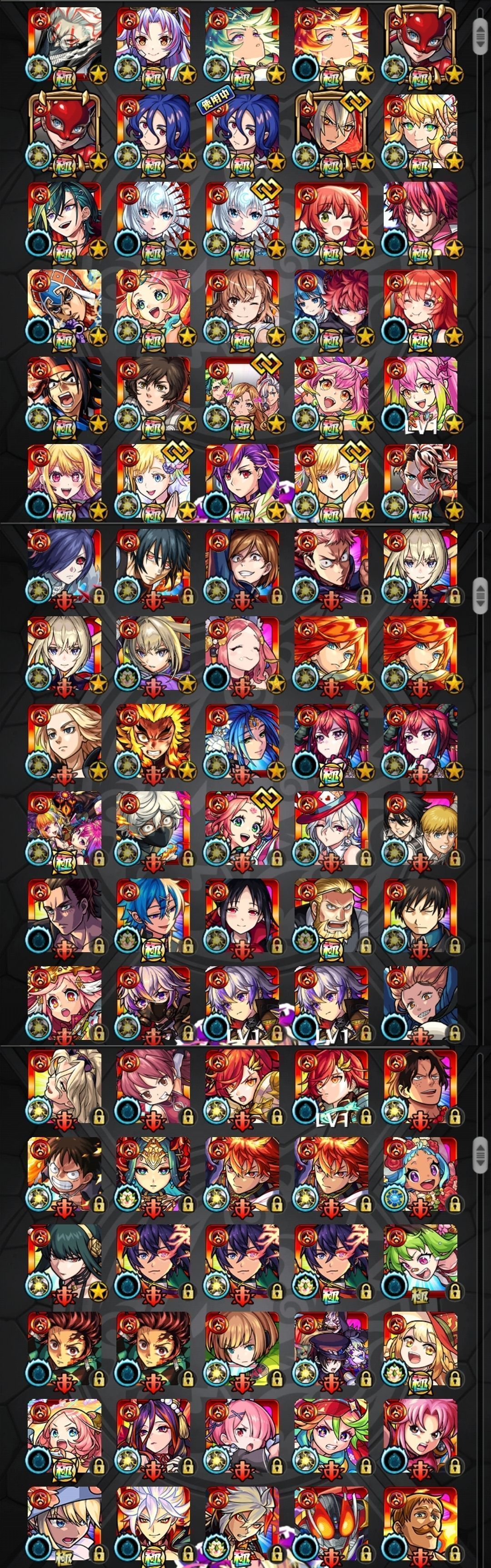 アカウント特定防止といった観点から、主なモンスターを抜粋して記載させていただいております。