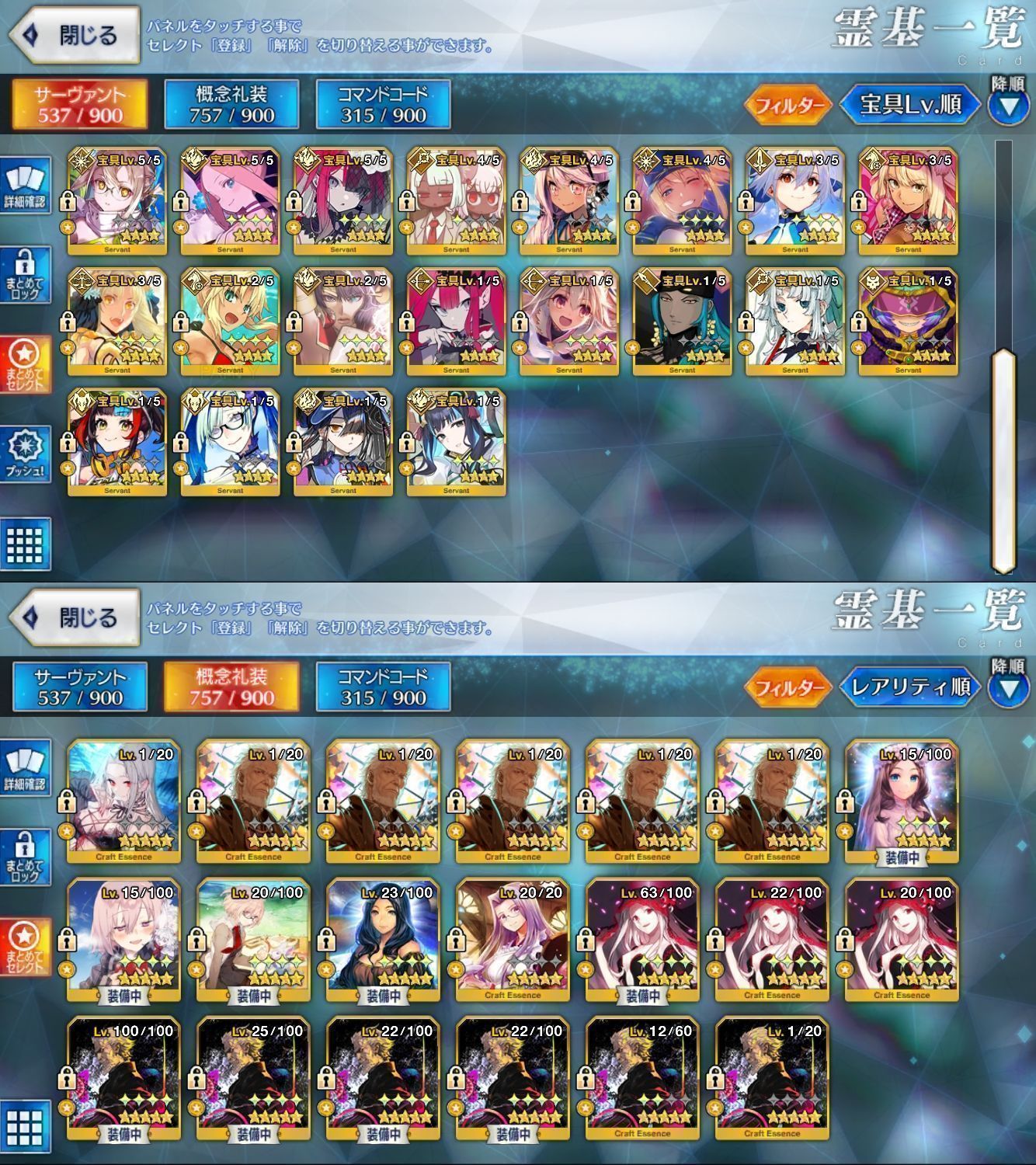 重複分は宝具強化に使用しているため、累計入手数=★5サーヴァントの宝具レベル合計値となります。