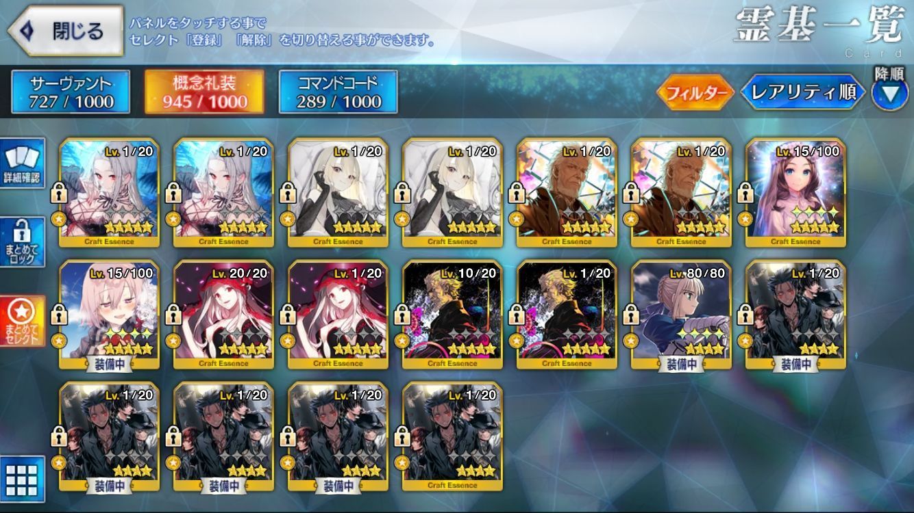 星5サーヴァントの数は累計入手数です。