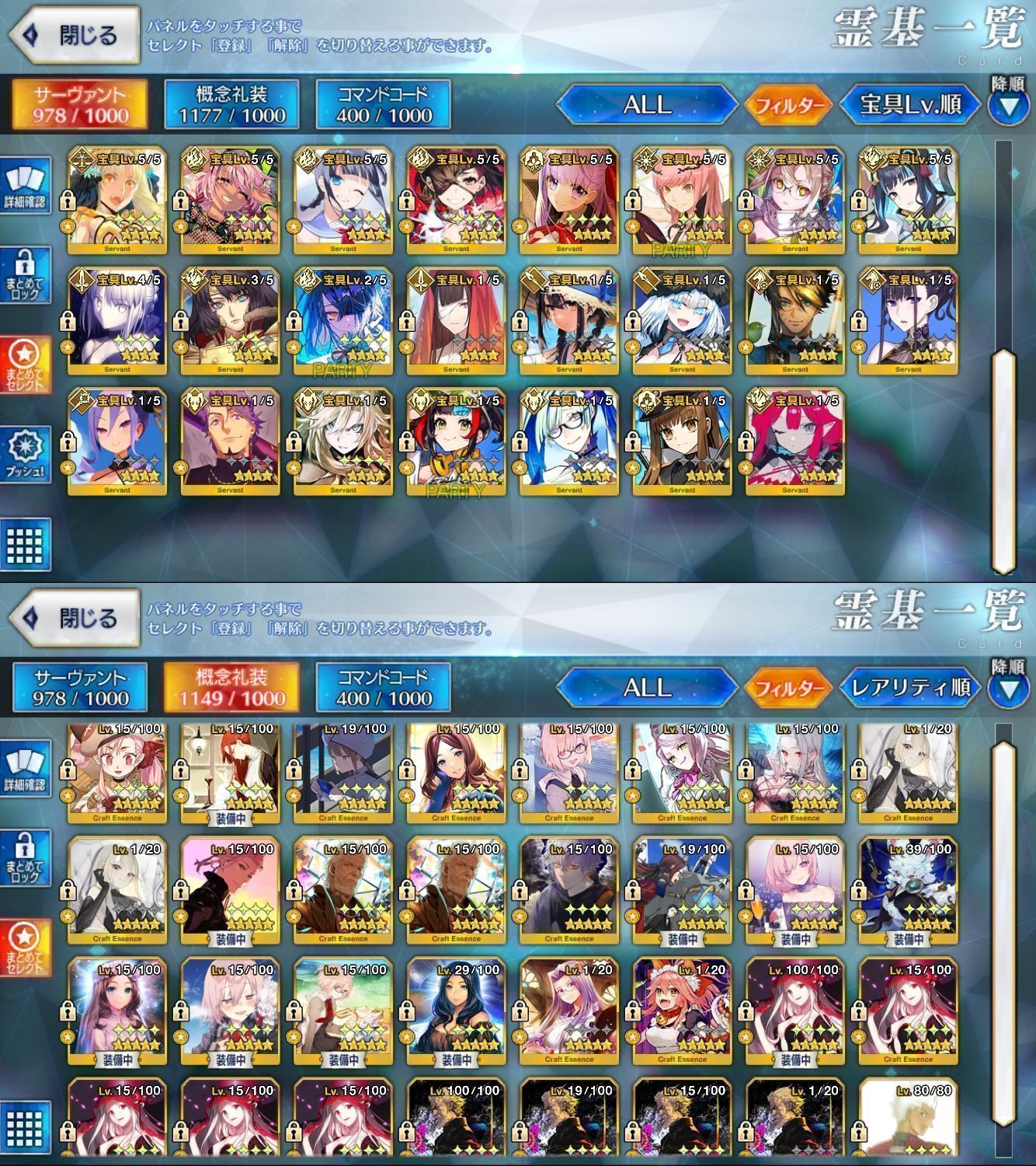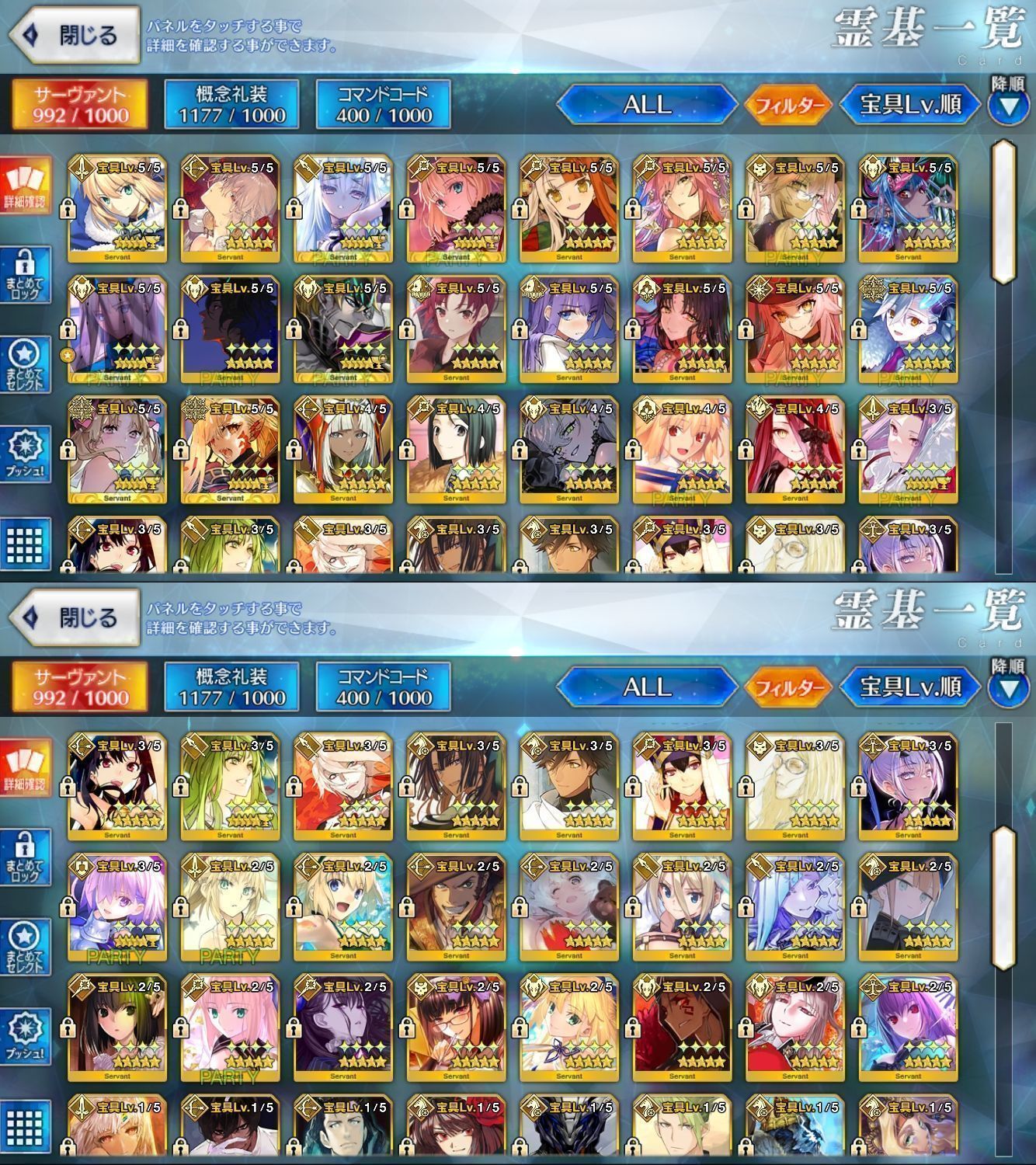 重複分は宝具強化に使用しているため、累計入手数=★5サーヴァントの宝具レベル合計値となります。