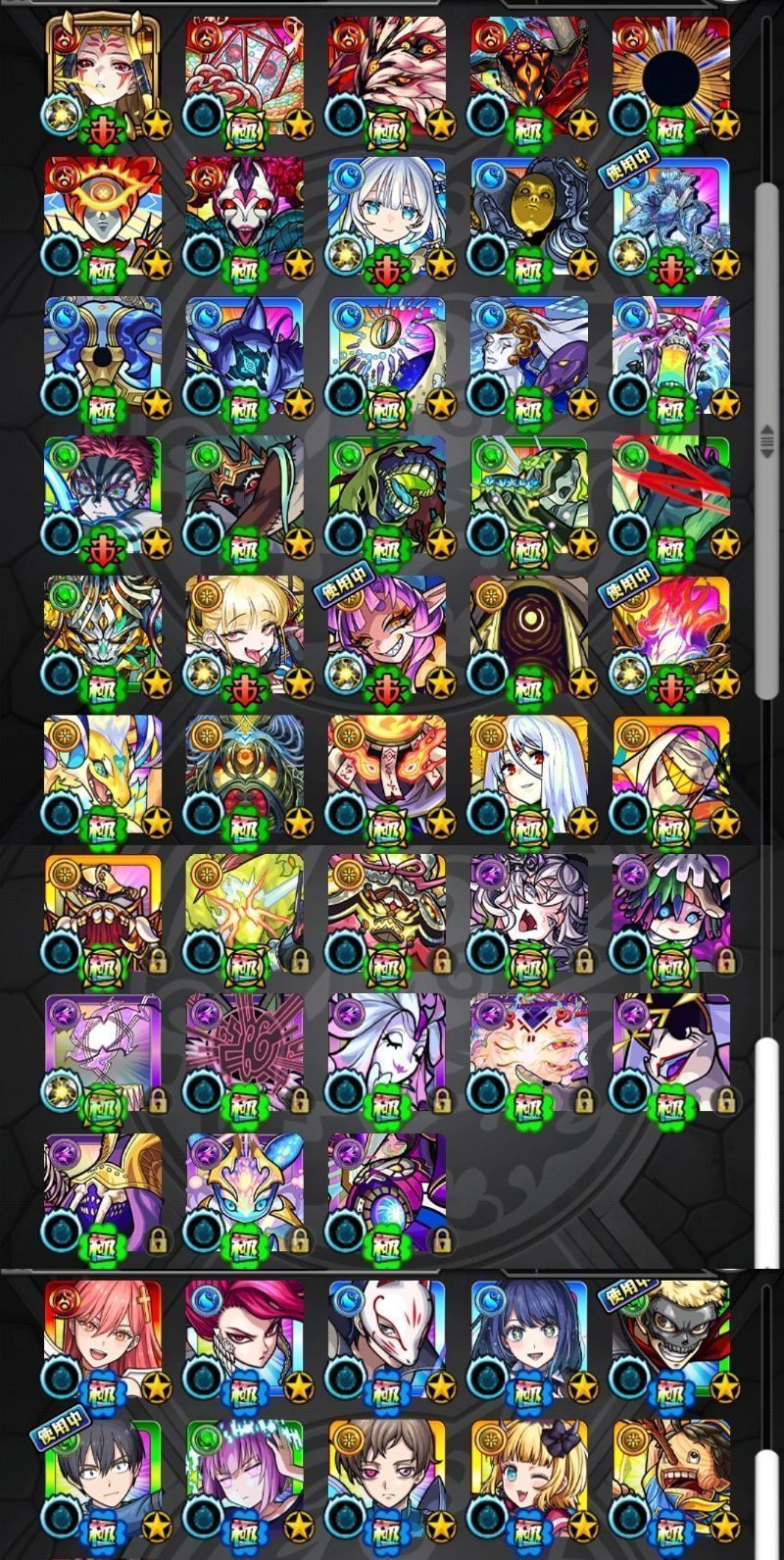 アカウント特定防止といった観点から、主なモンスターを抜粋して記載させていただいております。