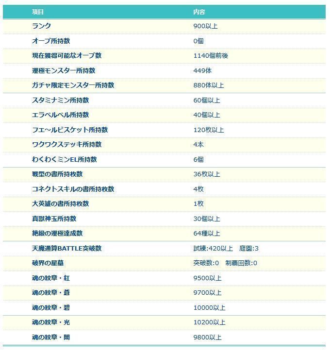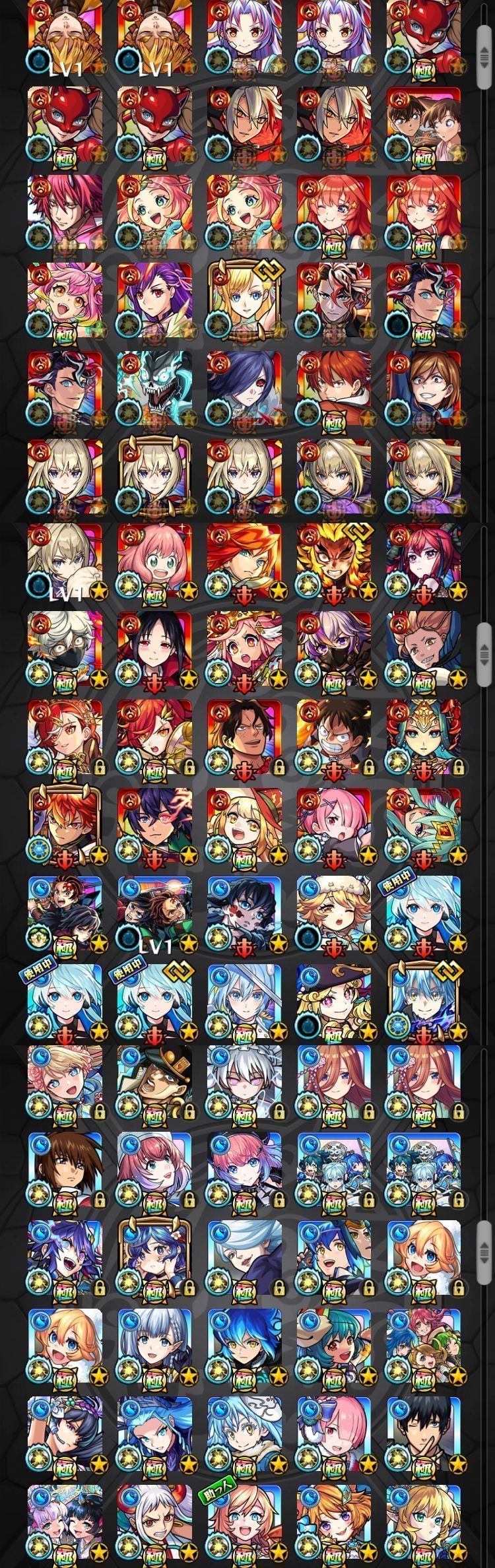 アカウント特定防止といった観点から、主なモンスターを抜粋して記載させていただいております。