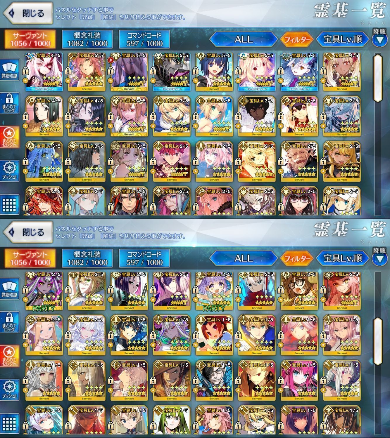 星5サーヴァントの数は累計入手数です。