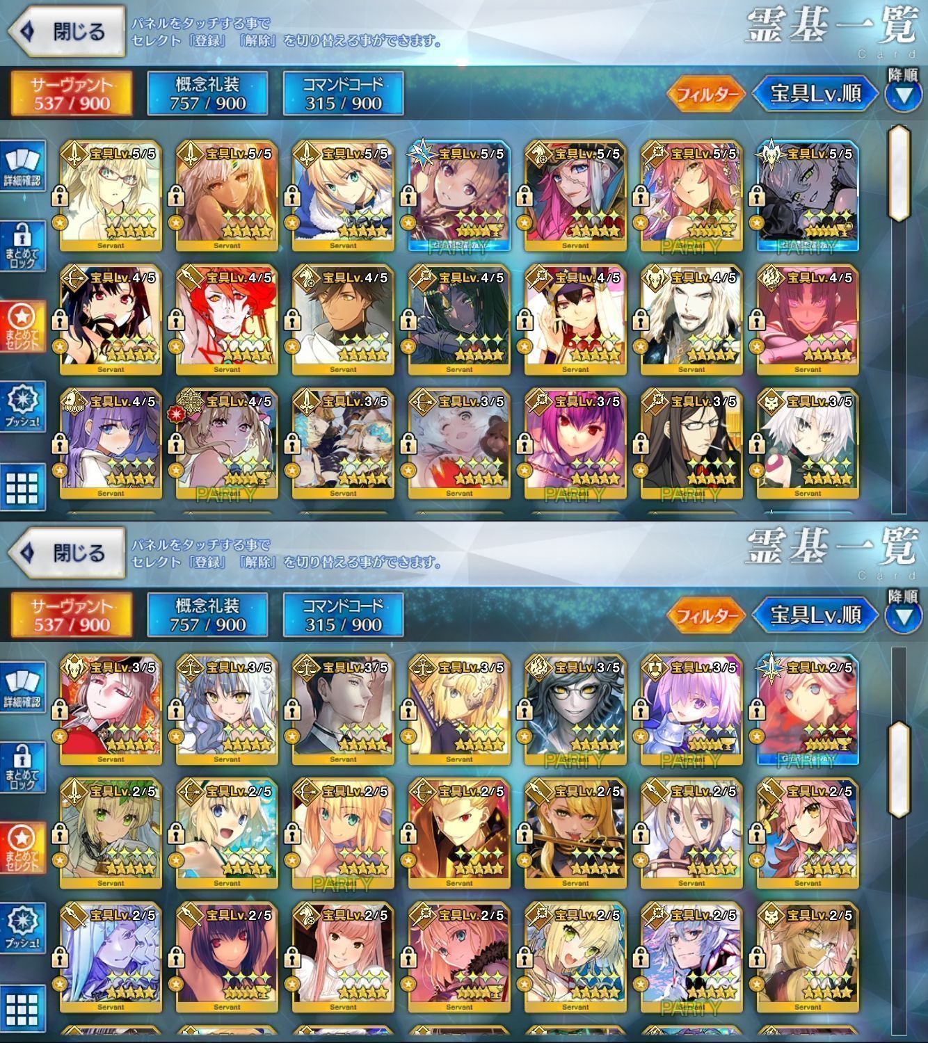 重複分は宝具強化に使用しているため、累計入手数=★5サーヴァントの宝具レベル合計値となります。
