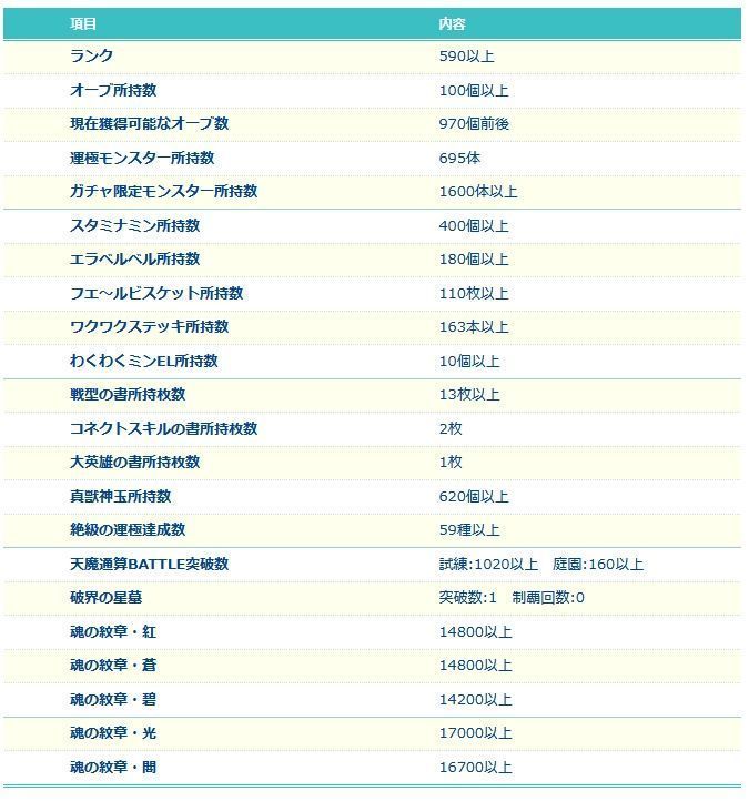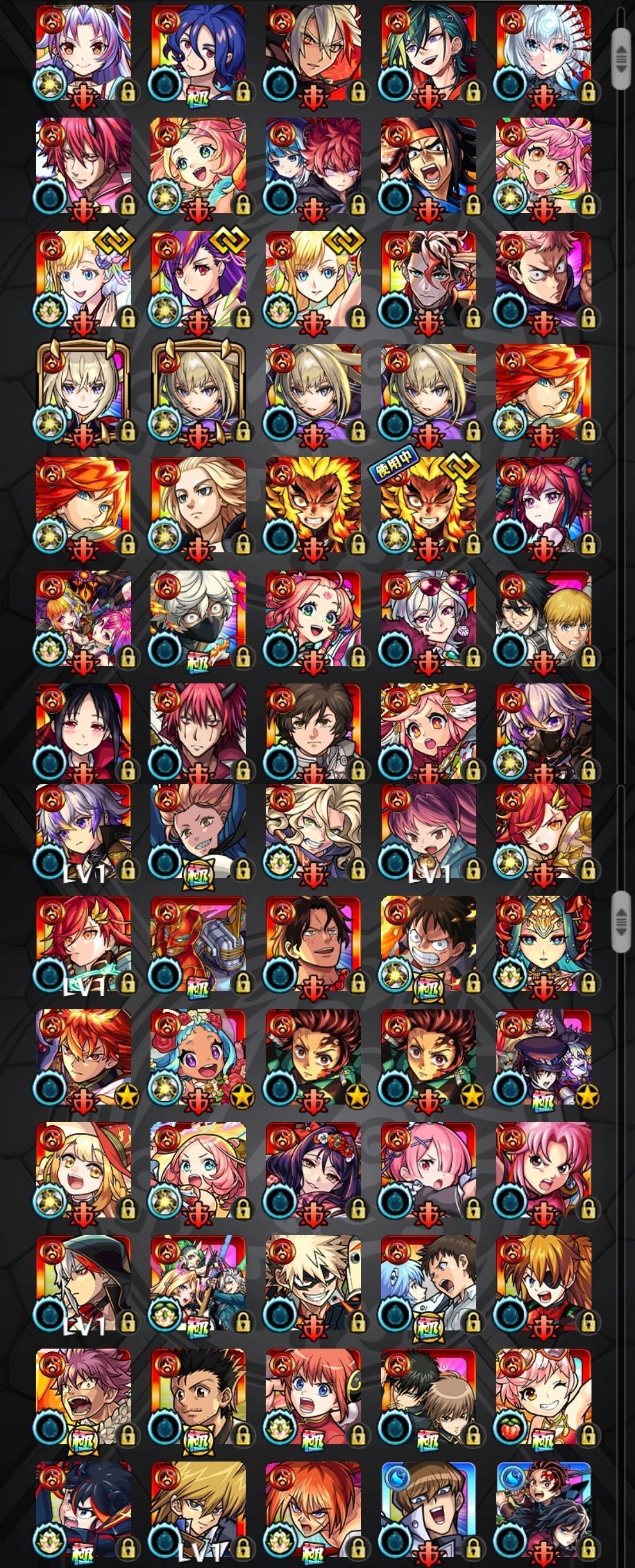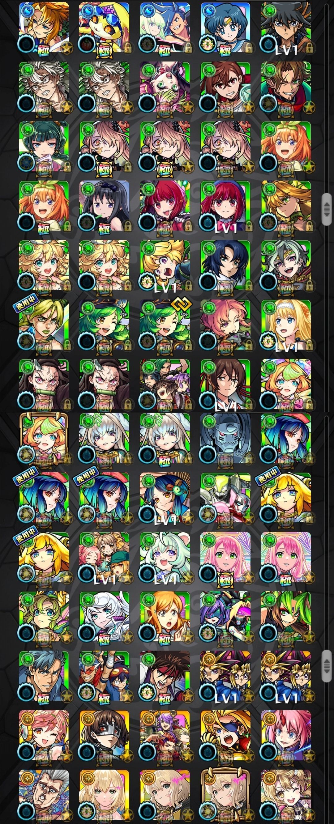アカウント特定防止といった観点から、主なモンスターを抜粋して記載させていただいております。